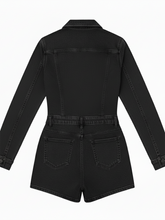 Long Sleeve Button Washed Denim Romper