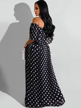 Chiffon Off Shoulder Polka Dot Maxi Dress