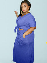 Plus Size 2 Piece Button Twist Knot Top Pocket Skirt Set