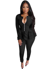 Two Piece Zipper Ruffle Hem Jacket Pants Sets