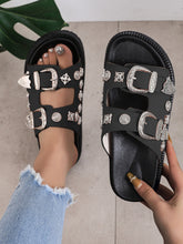 Material: PU Studded Metal Rivet Design Flat Sole Chic and Edgy Look Comfortable to Wear Open Toe Style- €27,93