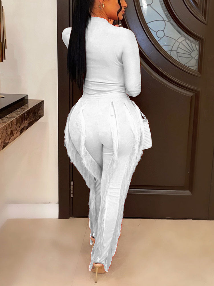 Features: The long-sleeve top and tassel fringe pants set feature a solid color that's both unique and stylish, offering an on-trend look that can add height and chicness to any outfit.