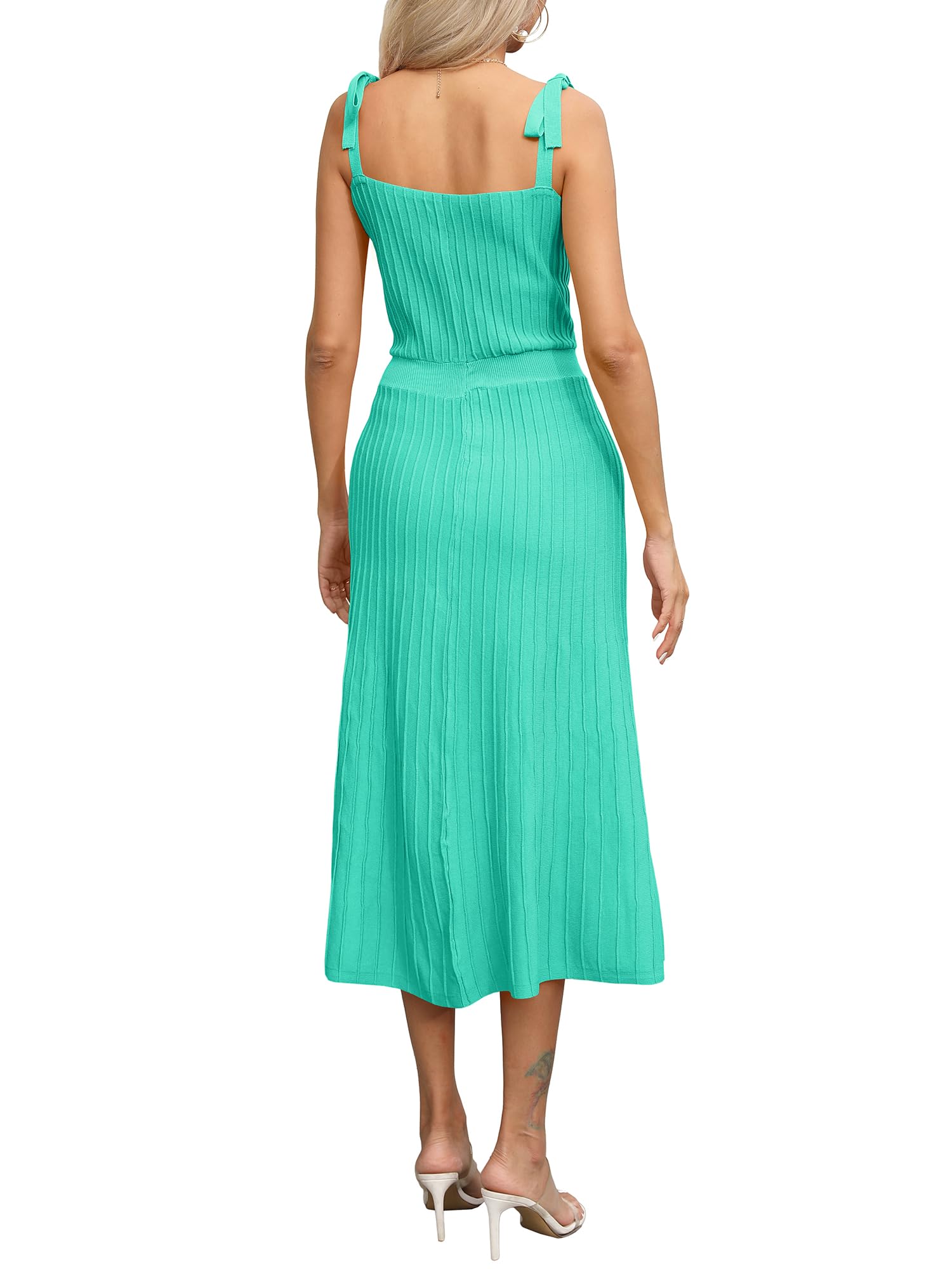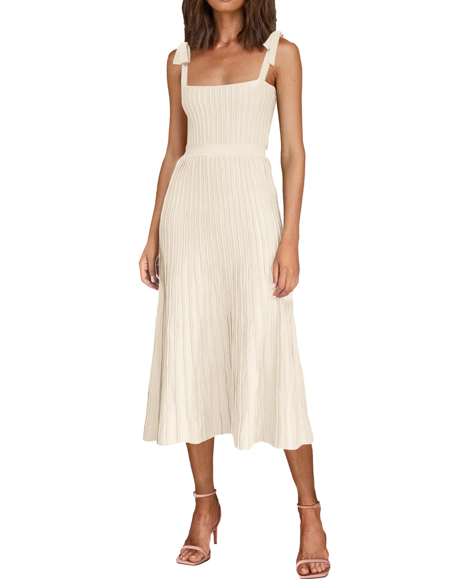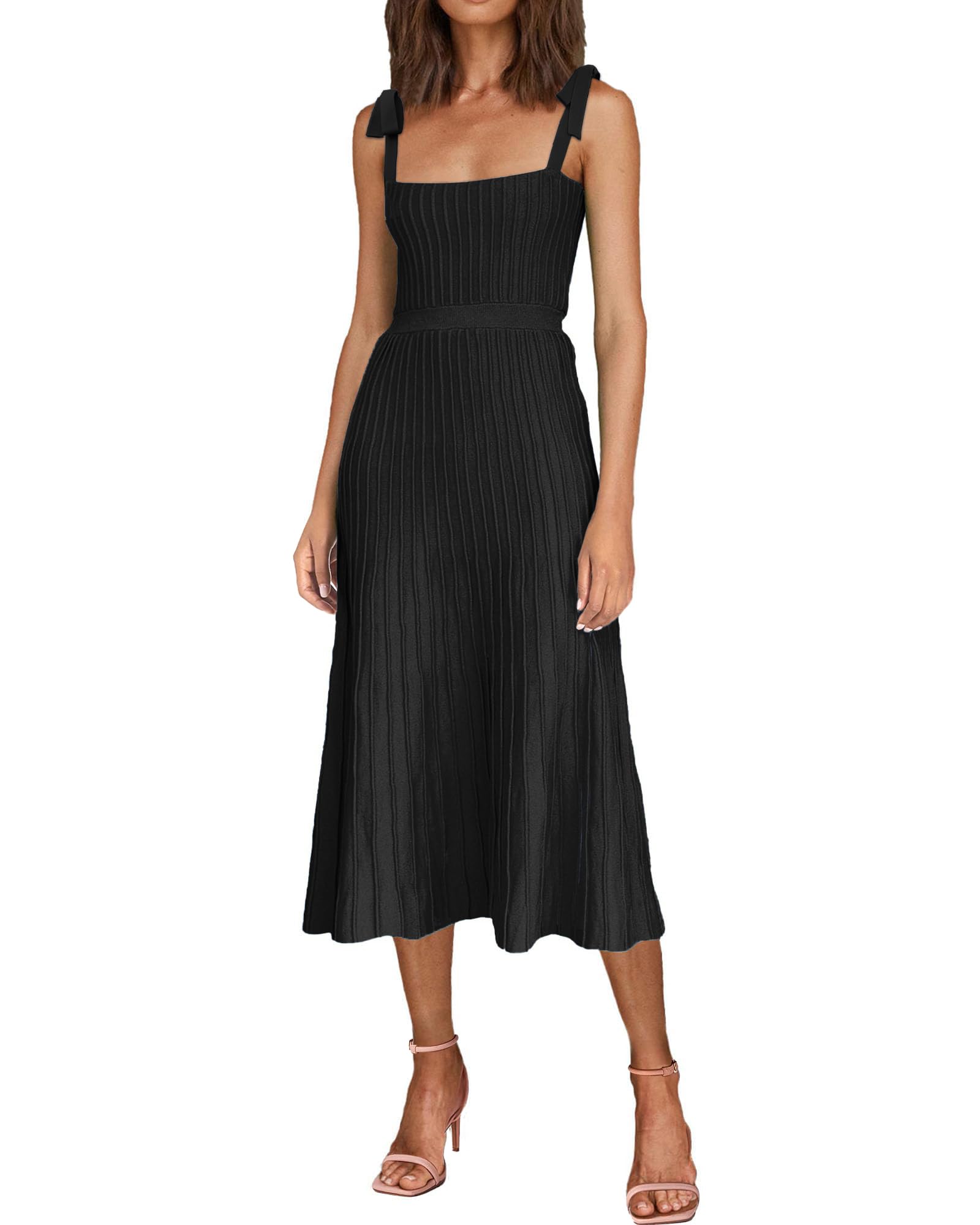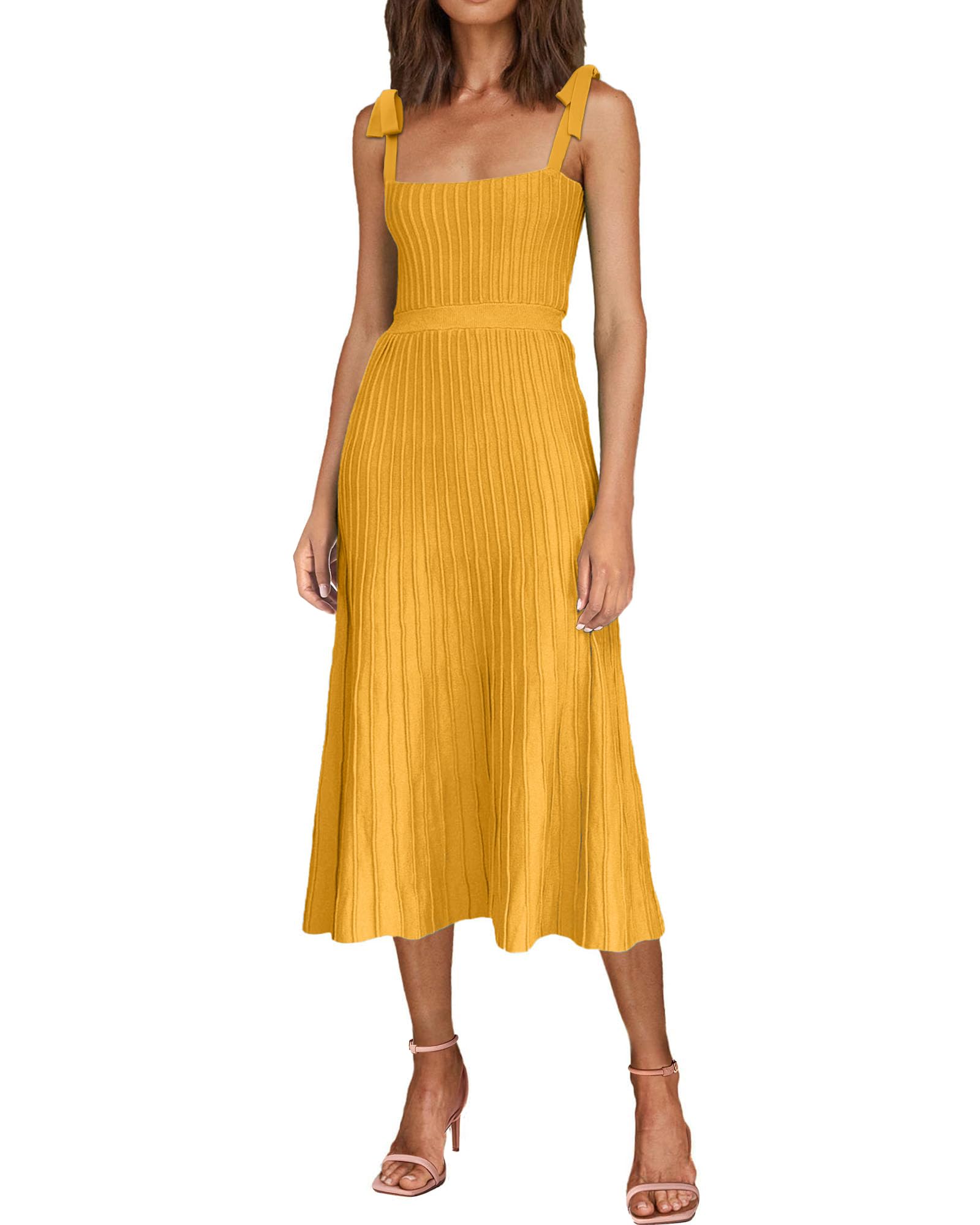 Tie Spaghetti Strap Square Neck Ribbed Knit Dress