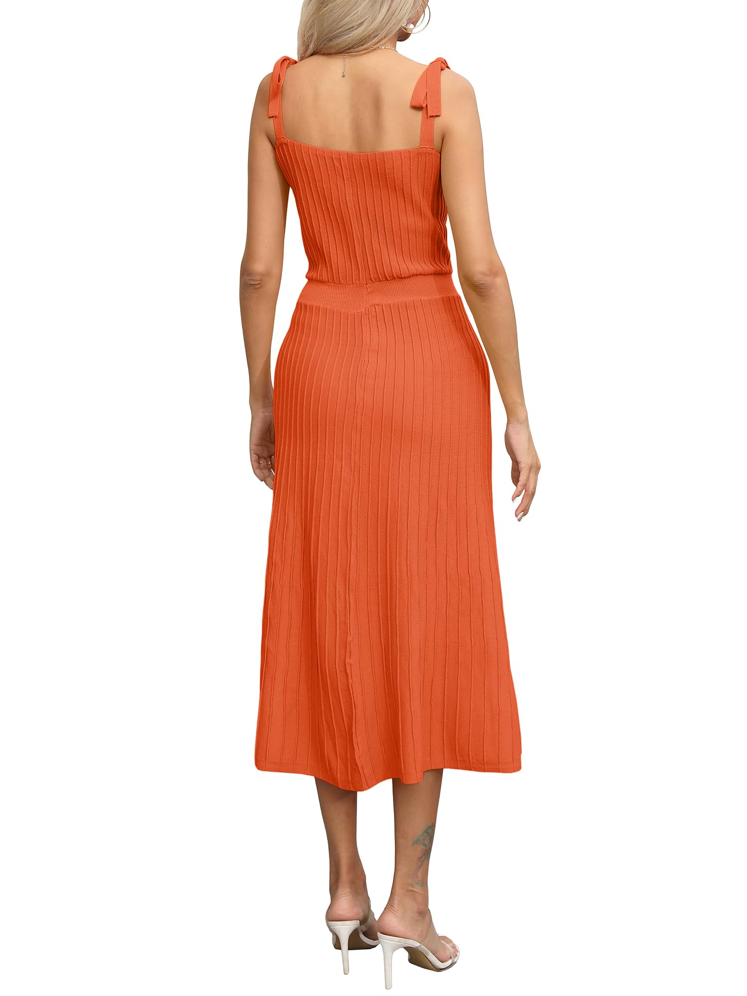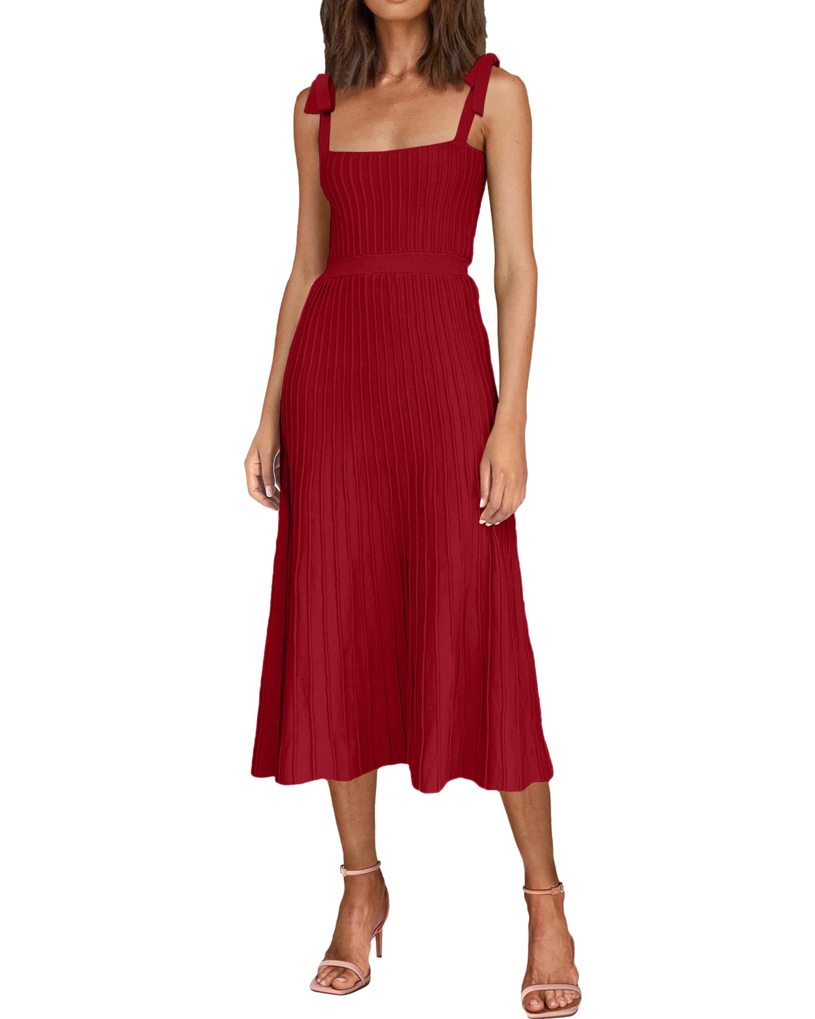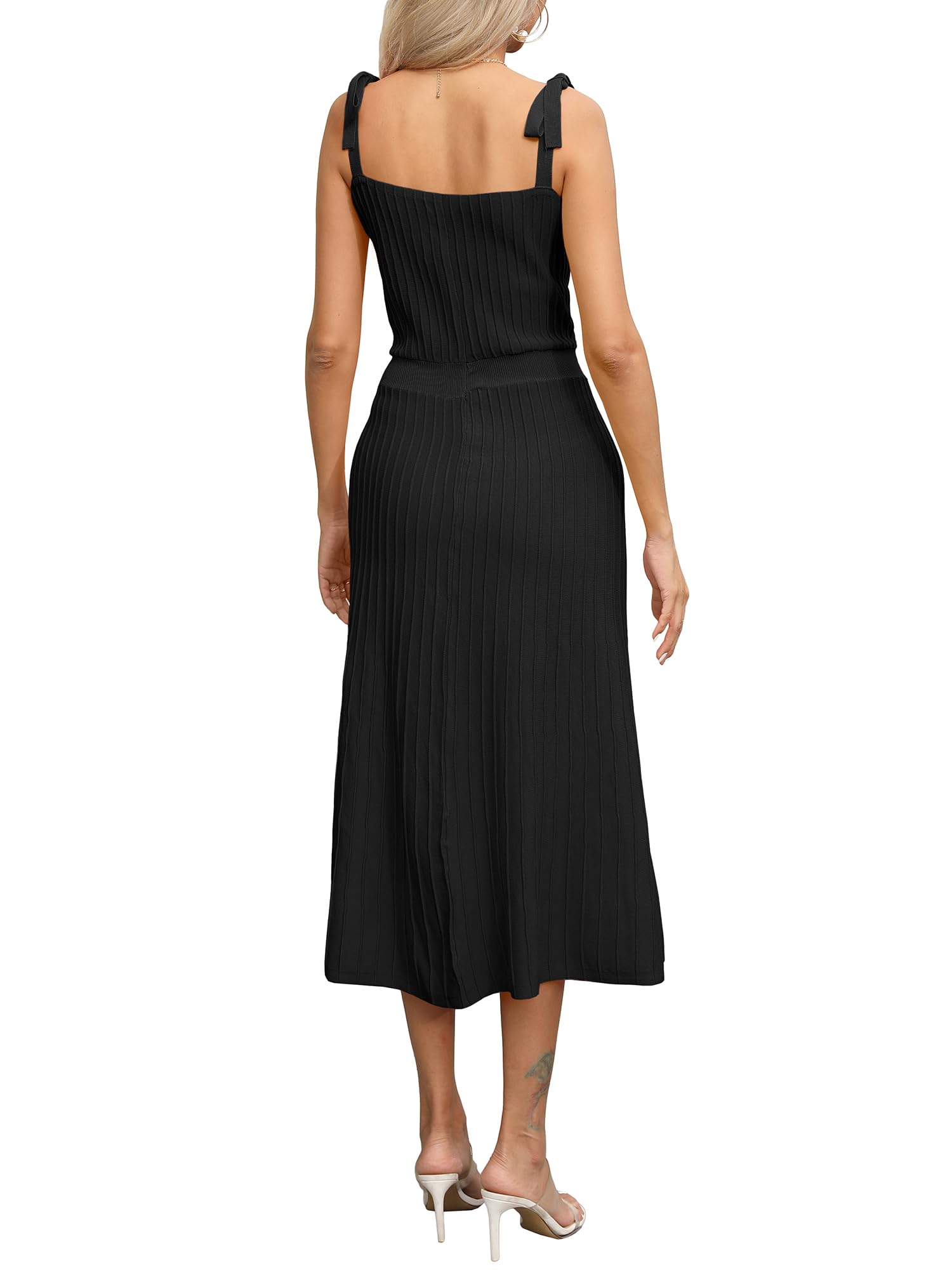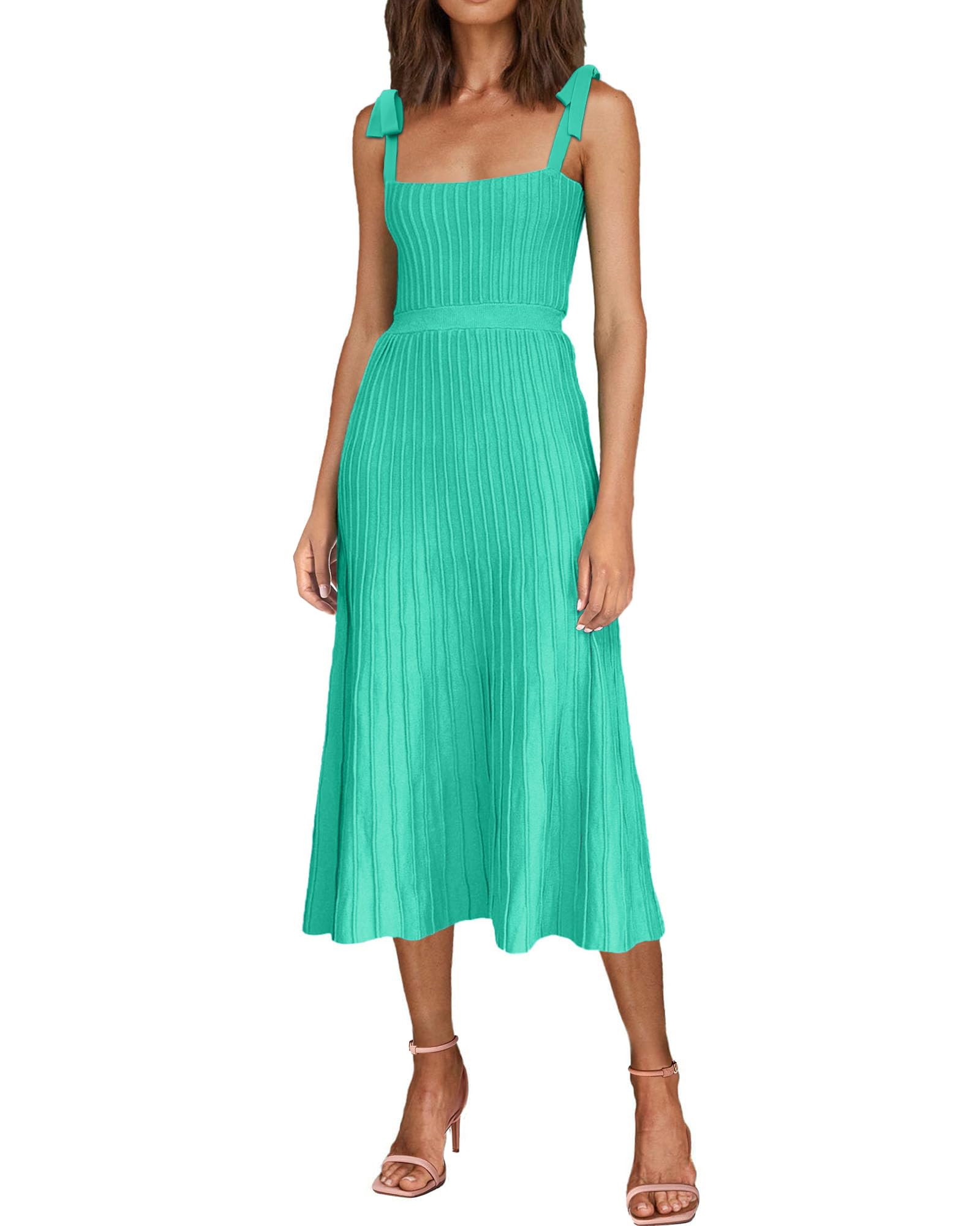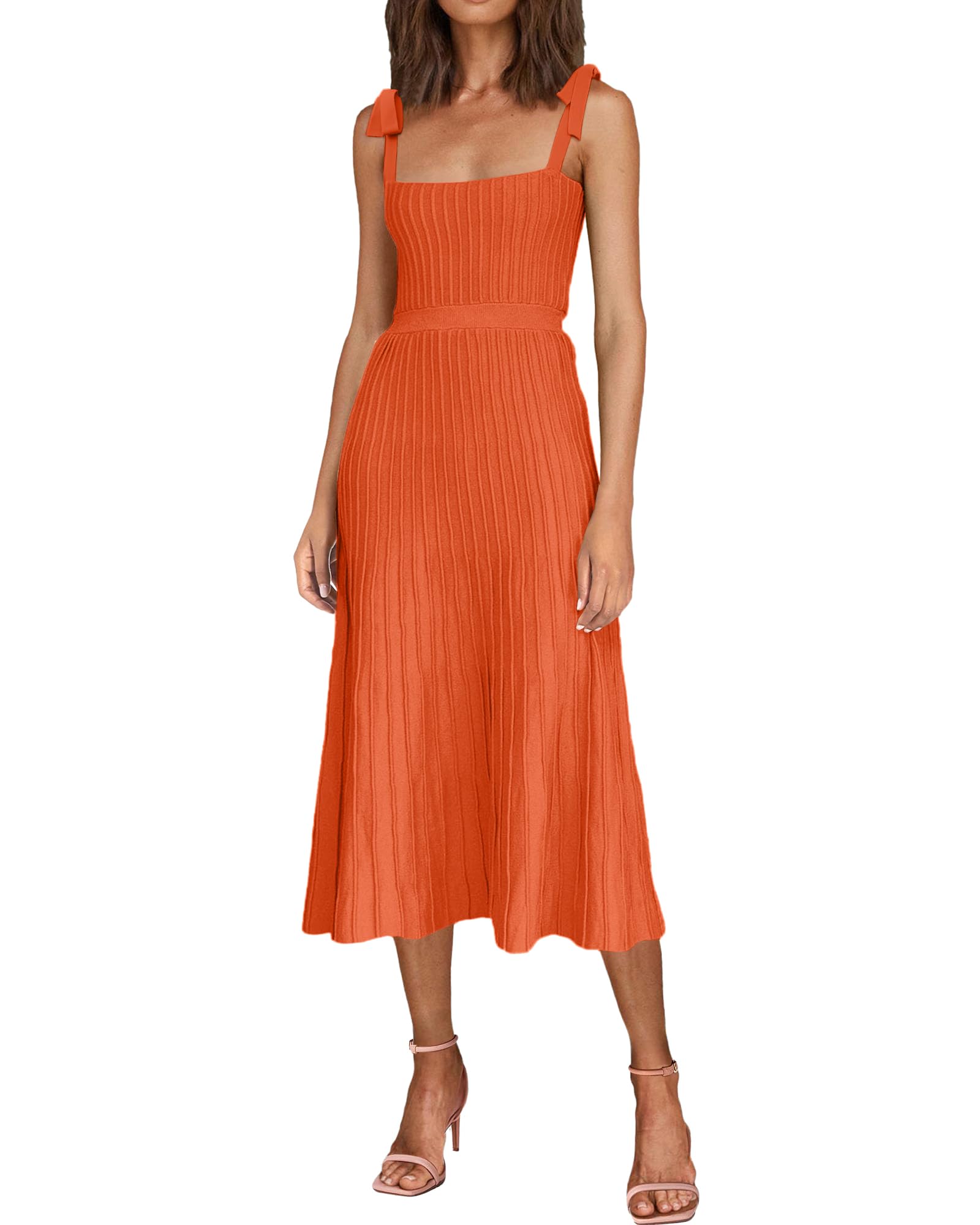 Tie Spaghetti Strap Square Neck Ribbed Knit Dress
