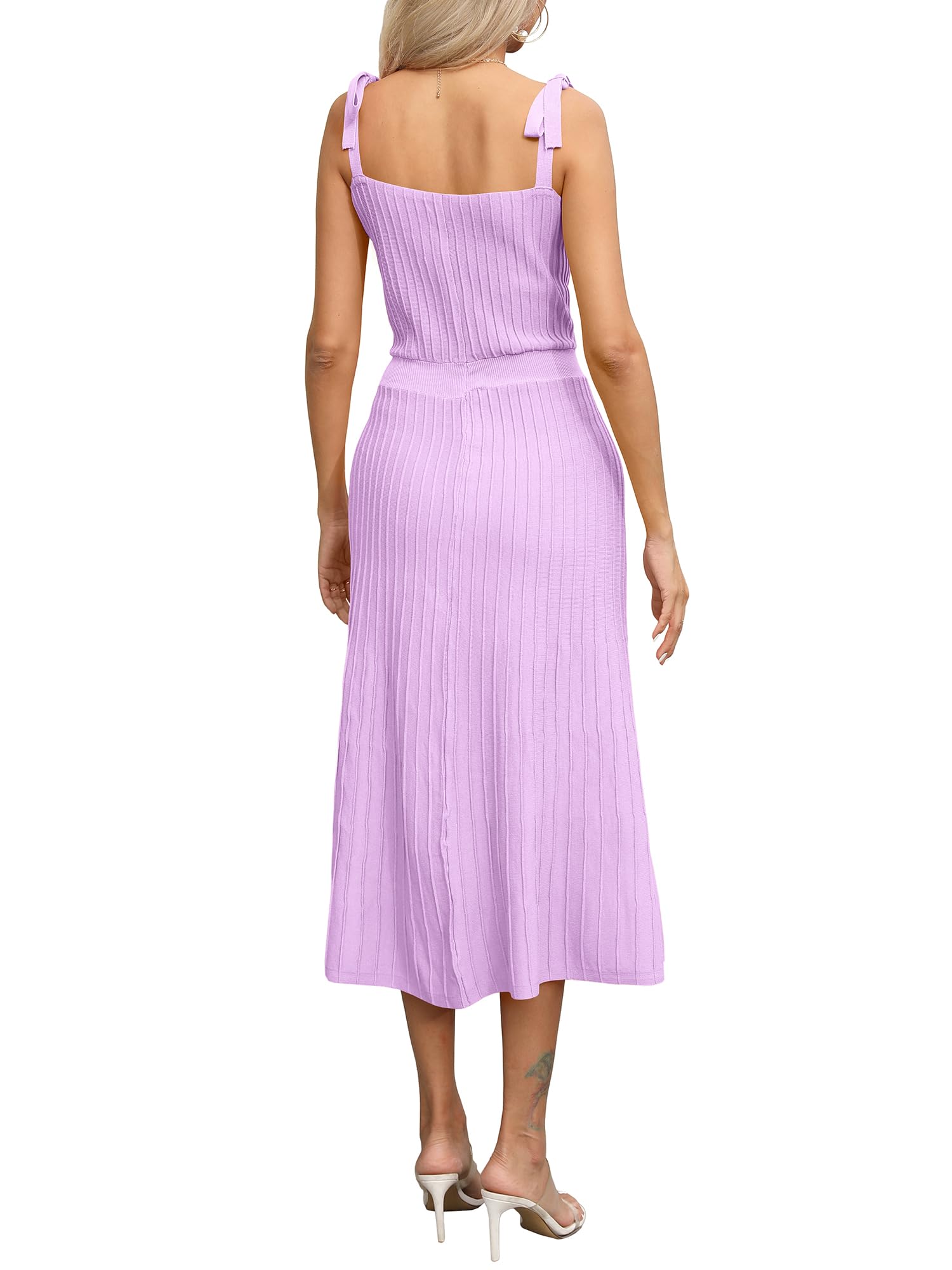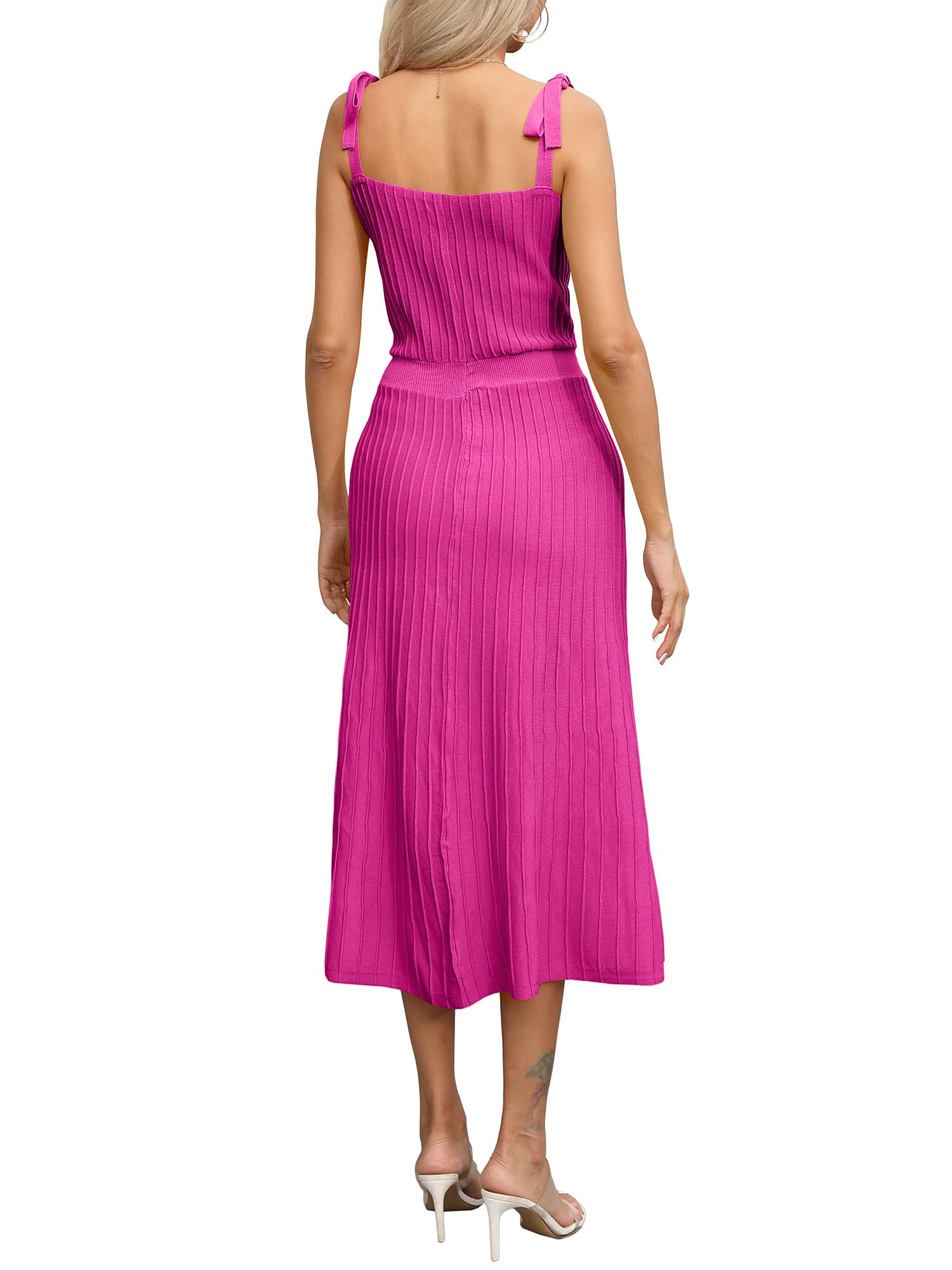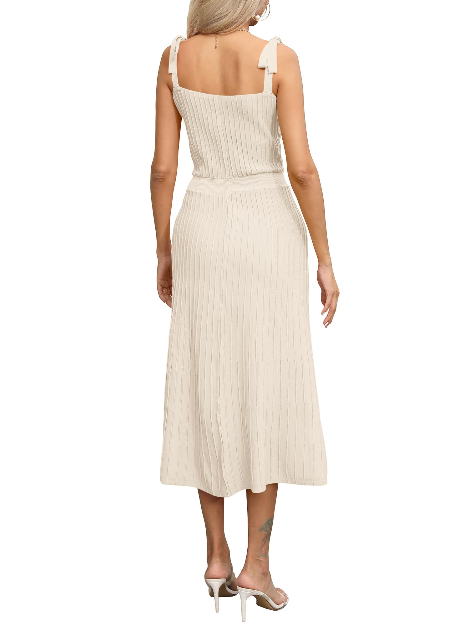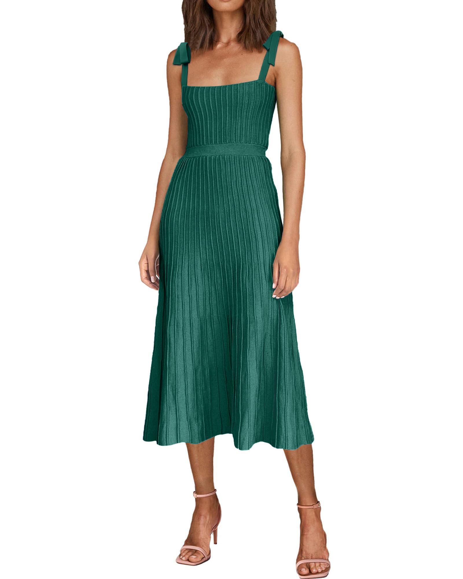 Tie Spaghetti Strap Square Neck Ribbed Knit Dress