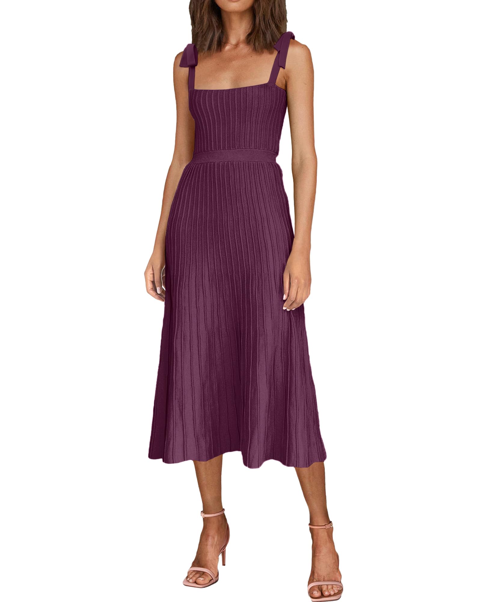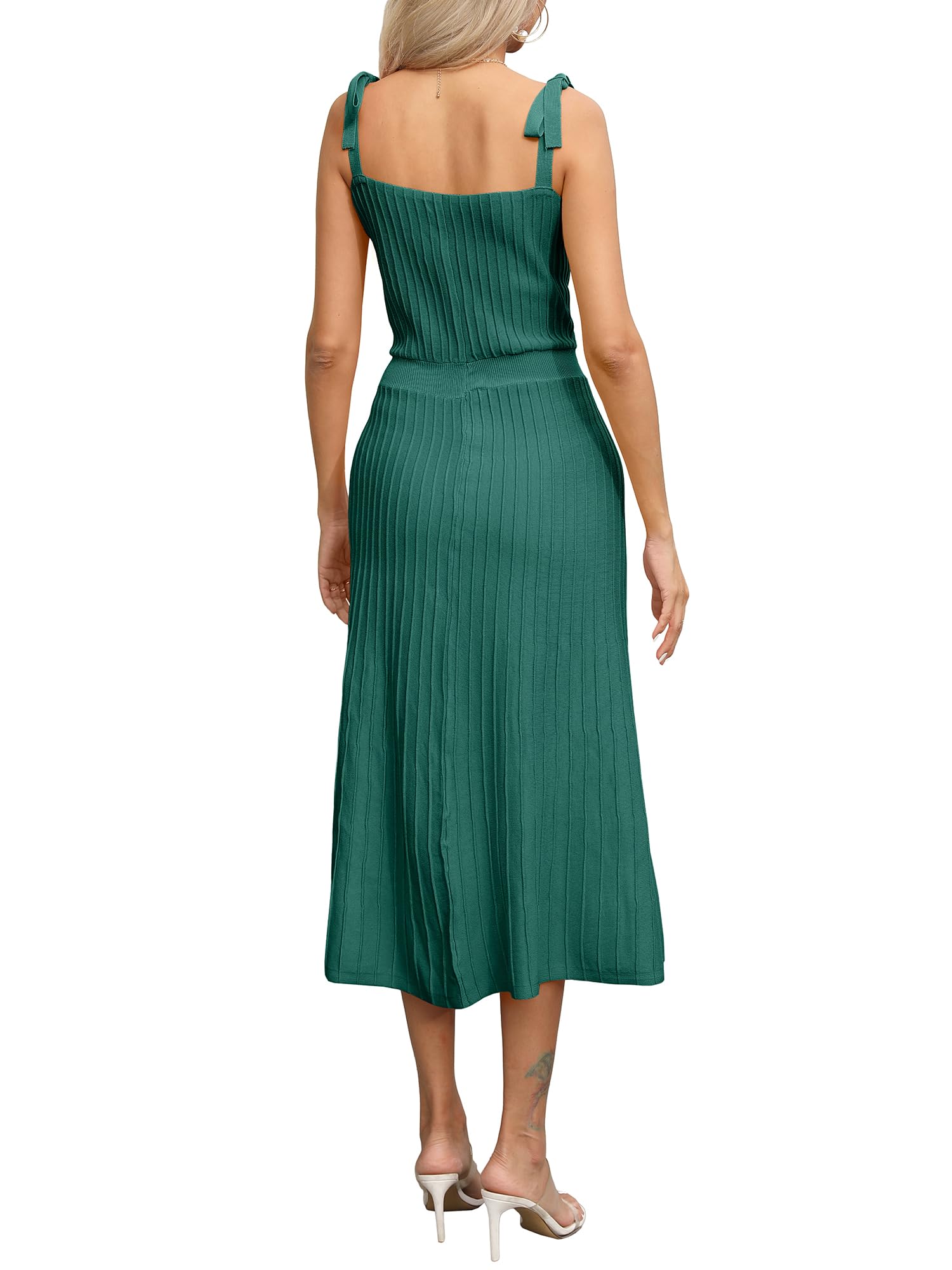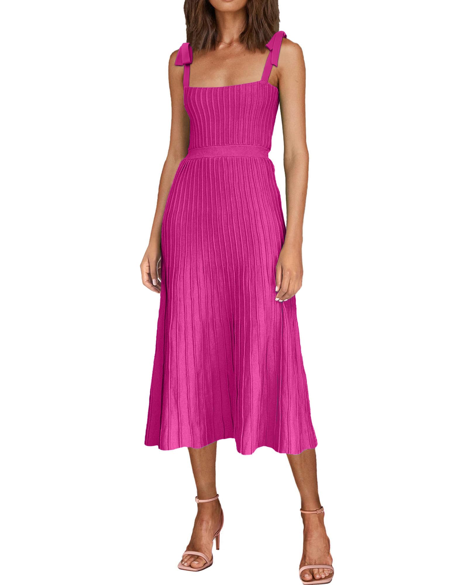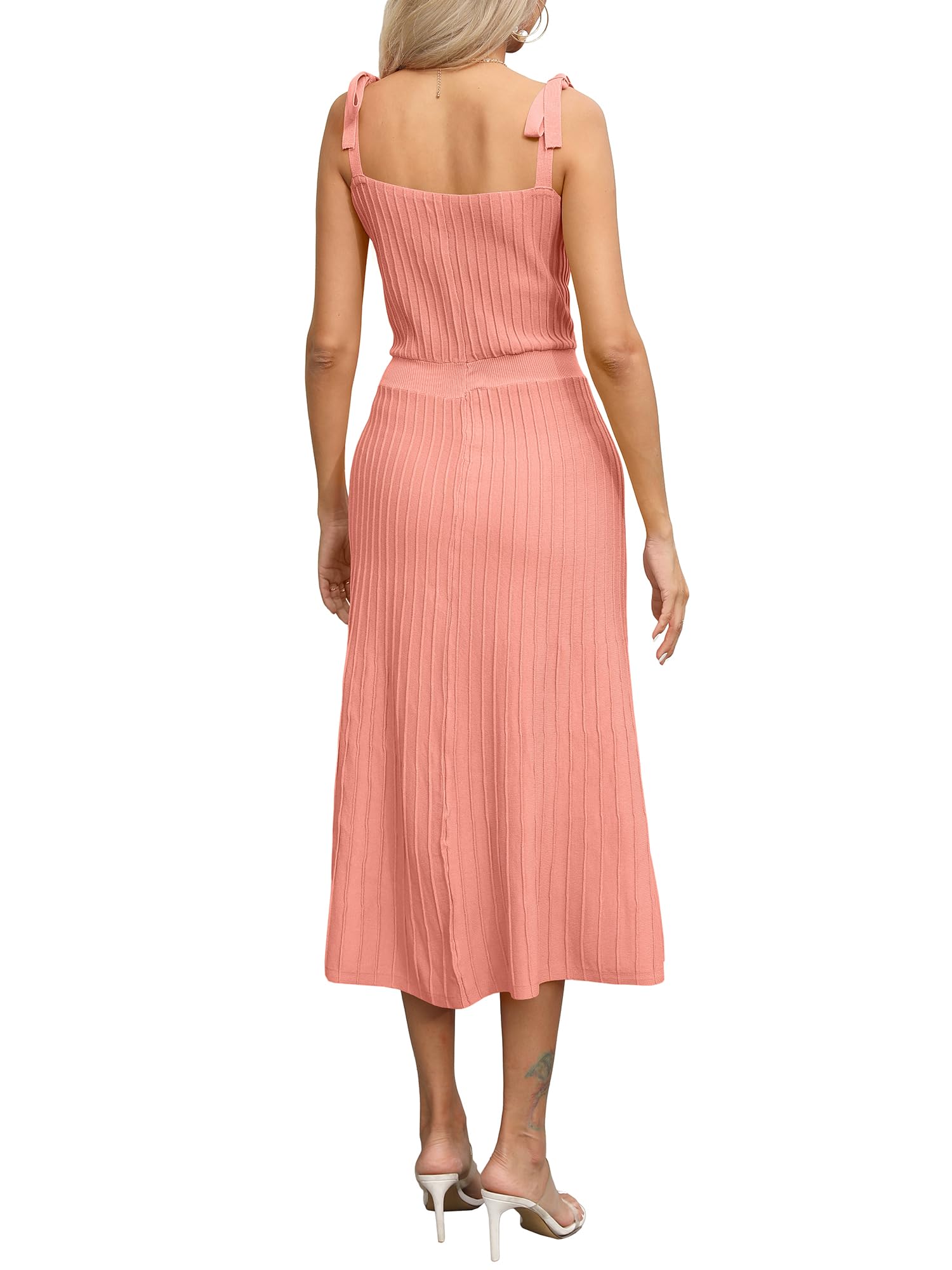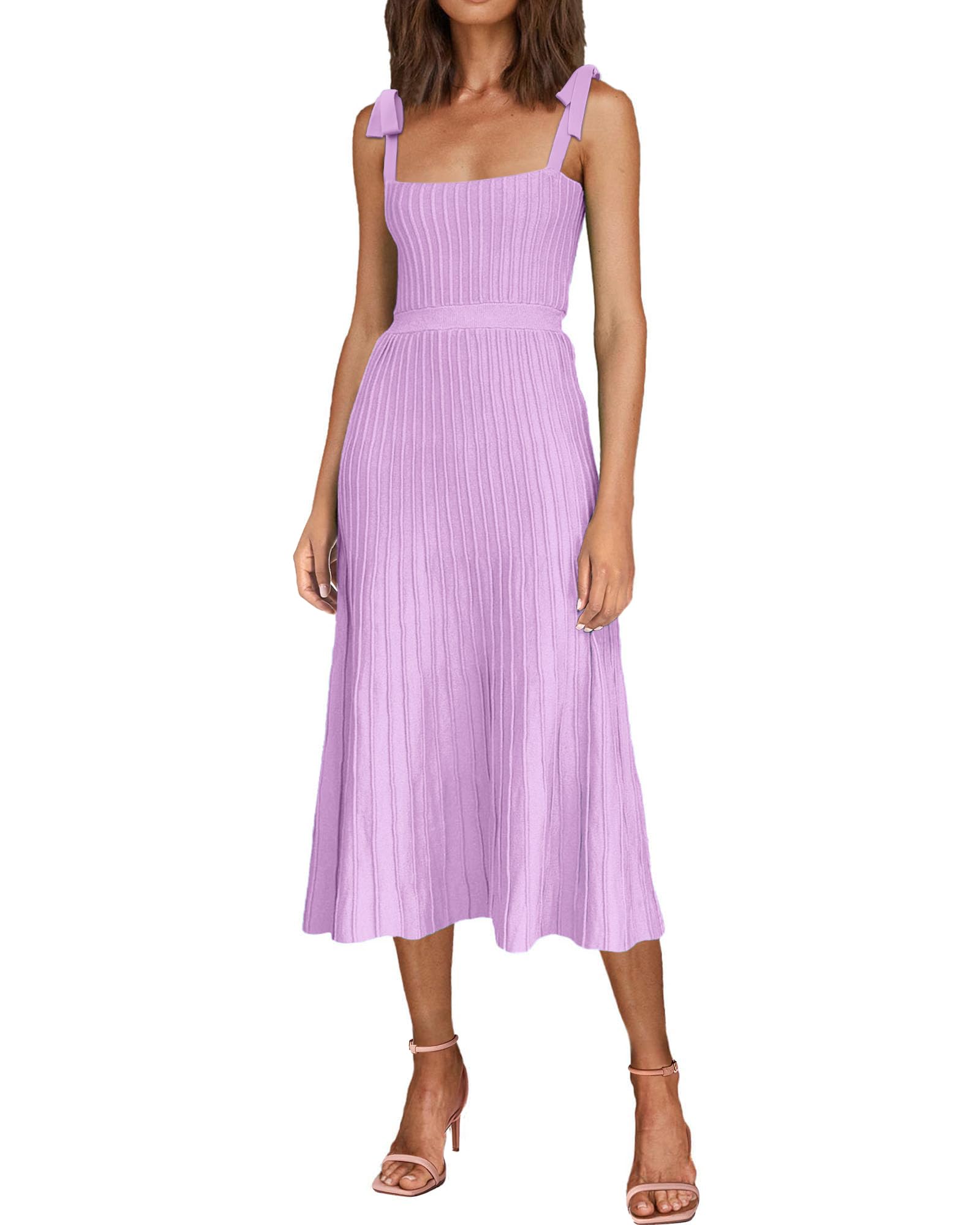 Tie Spaghetti Strap Square Neck Ribbed Knit Dress