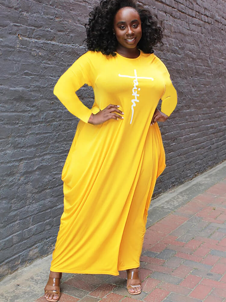 Features:Plus size, long sleeve, round neck, letter printing, oversized, loose fit, swing pleated skirt, fashionable and casual.