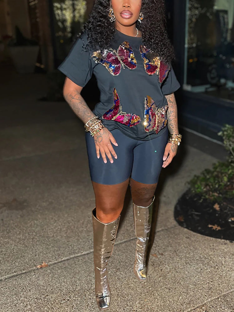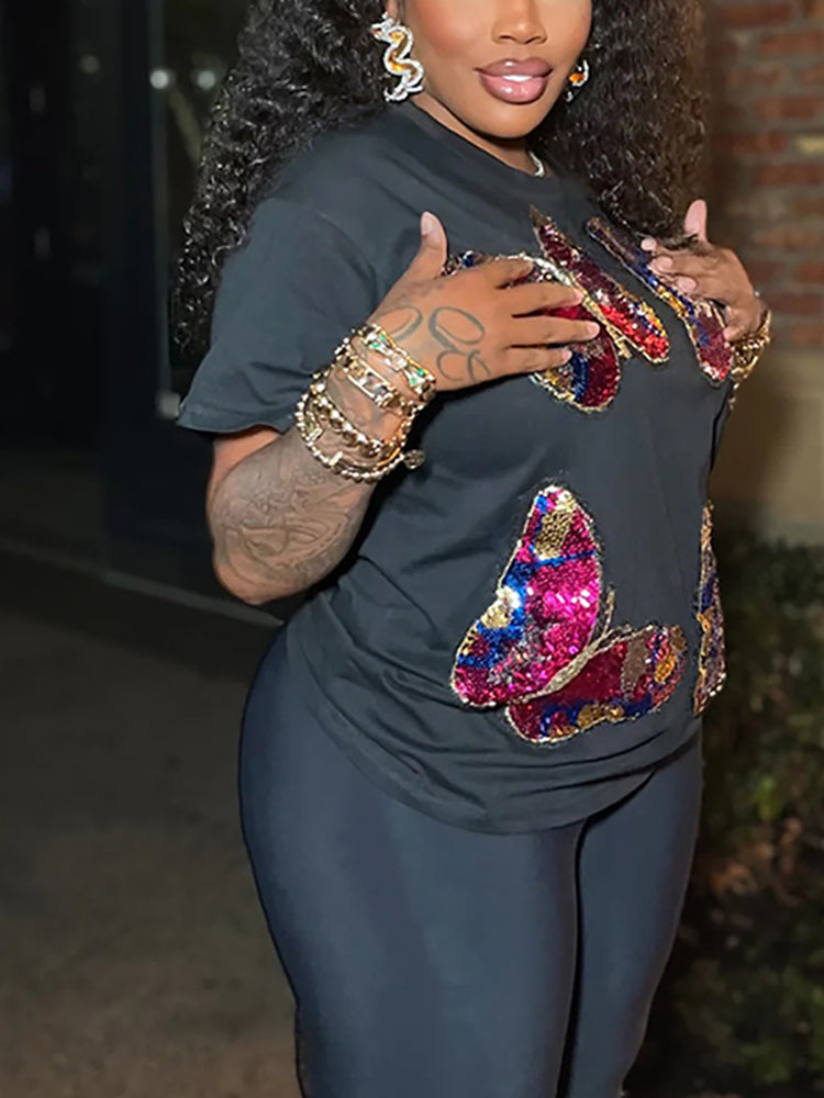 • Loose-fit sweatshirt adorned with sparkling butterfly sequins