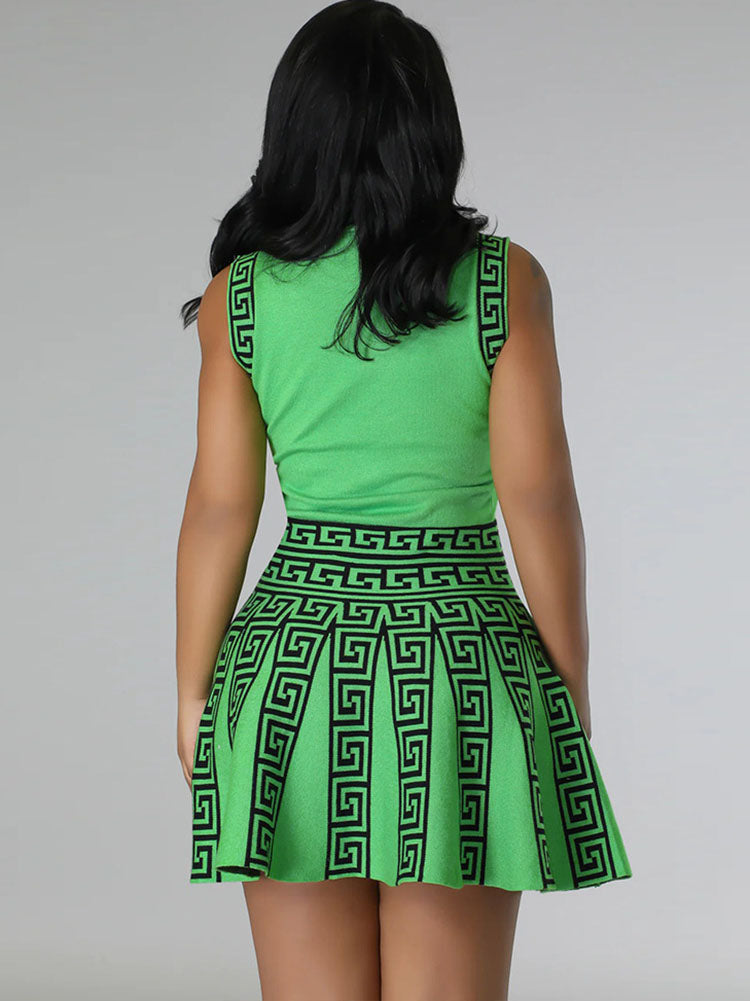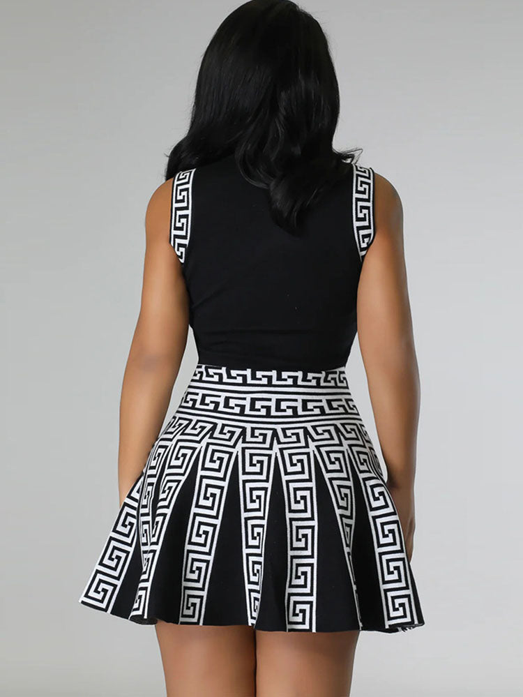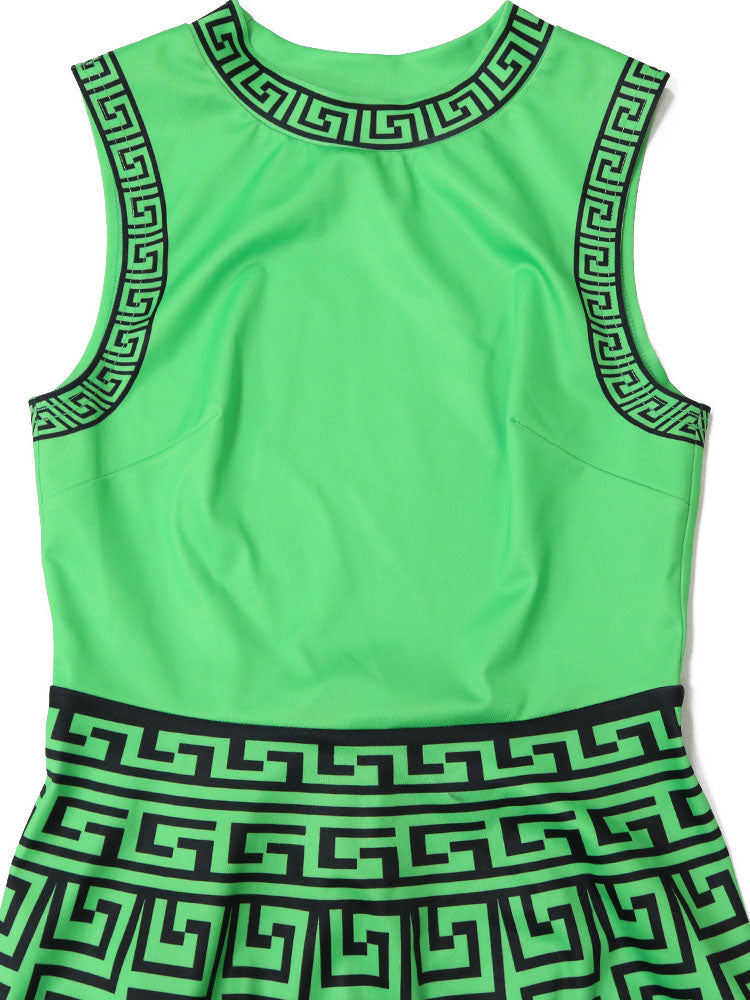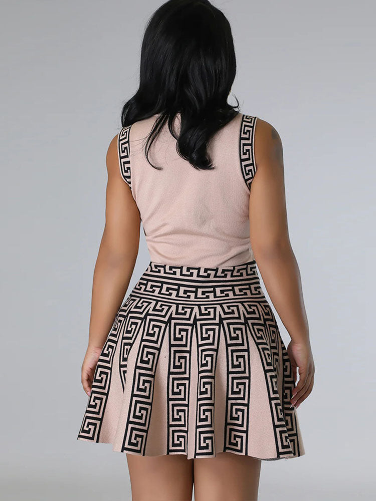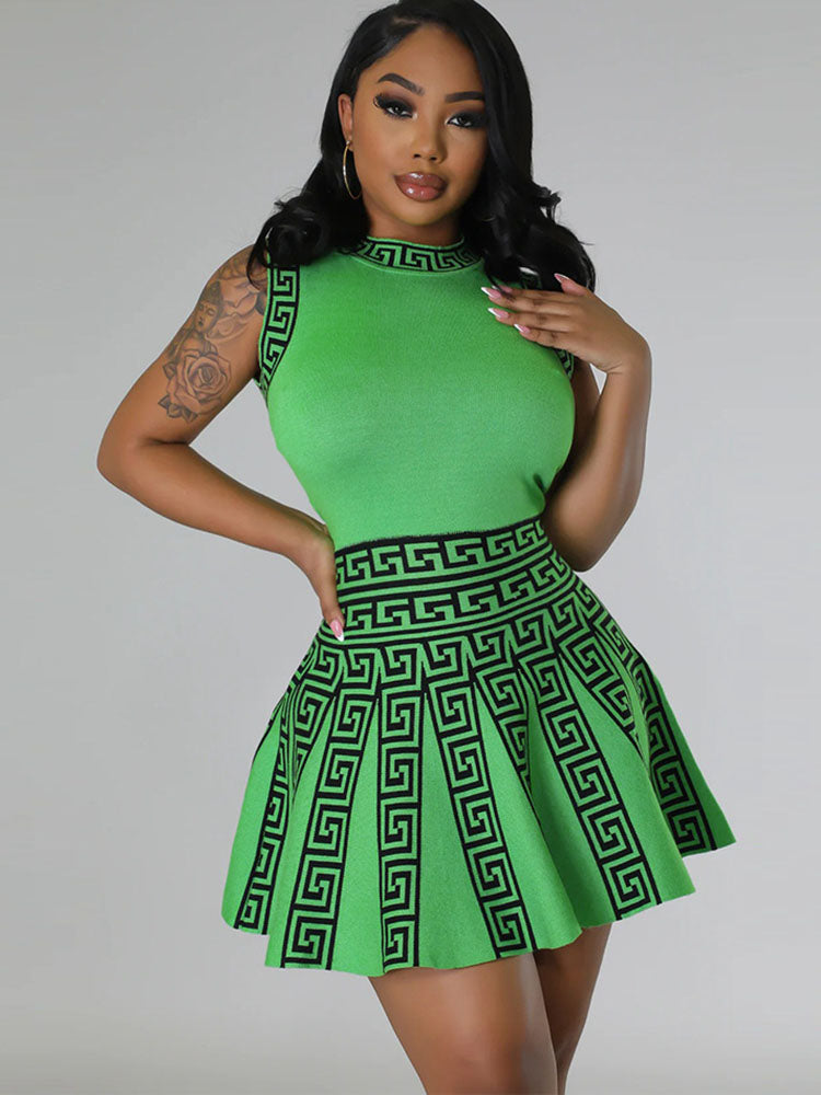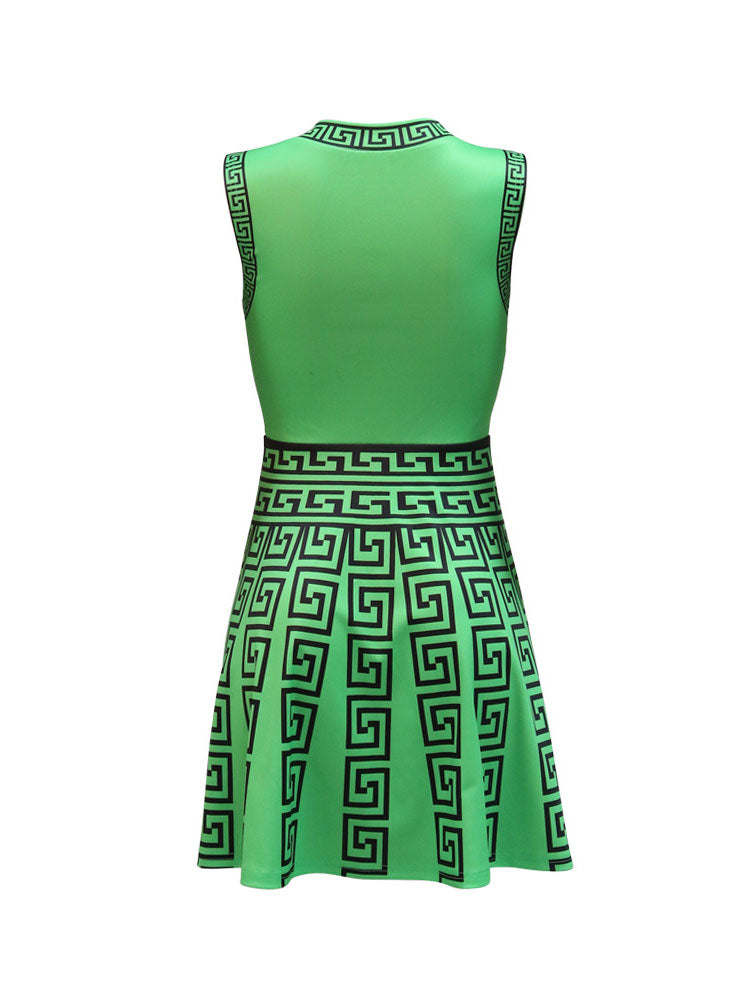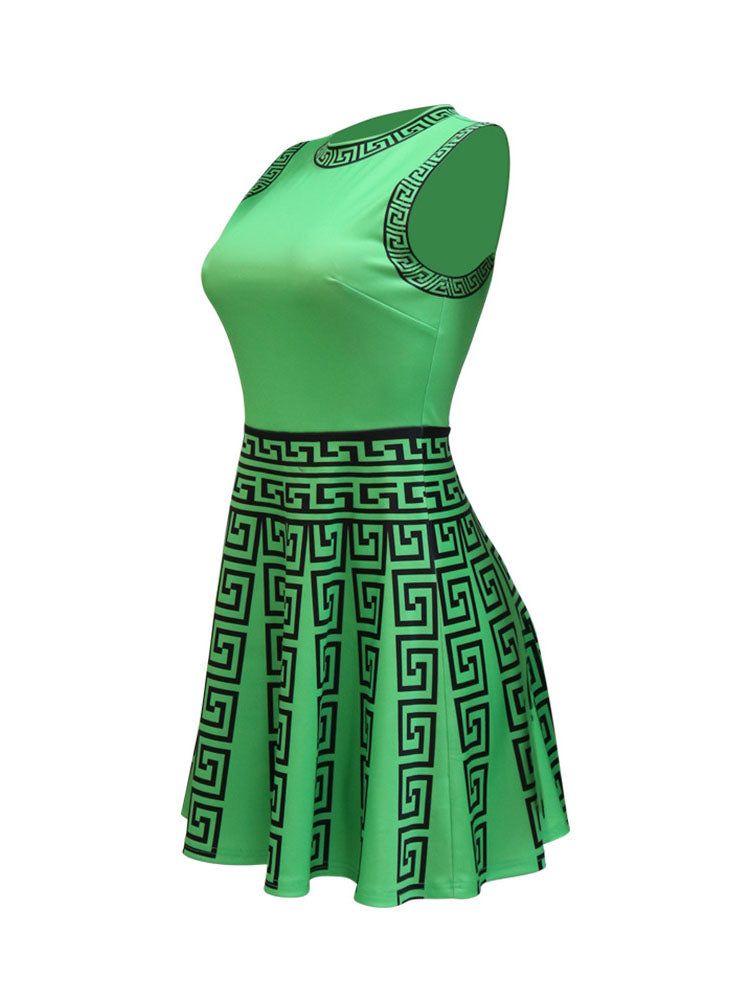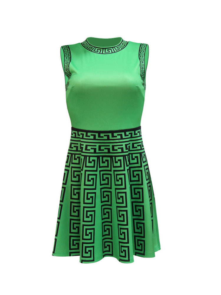 Features:Stretchy, sleeveless, print, patchwork, pleated, mini dress.