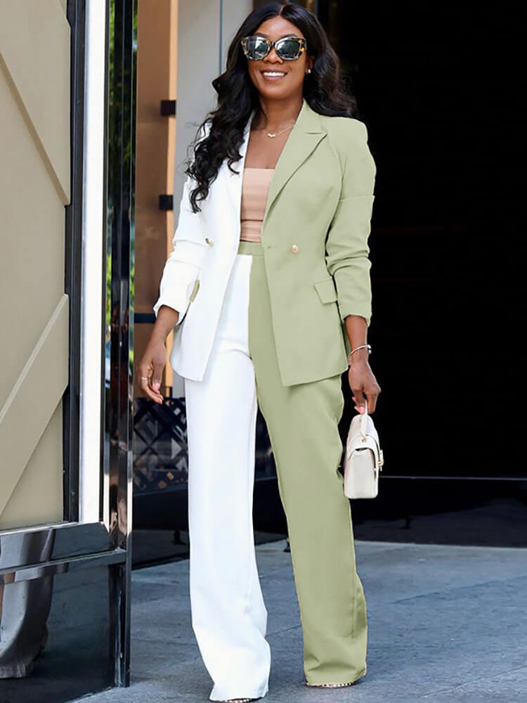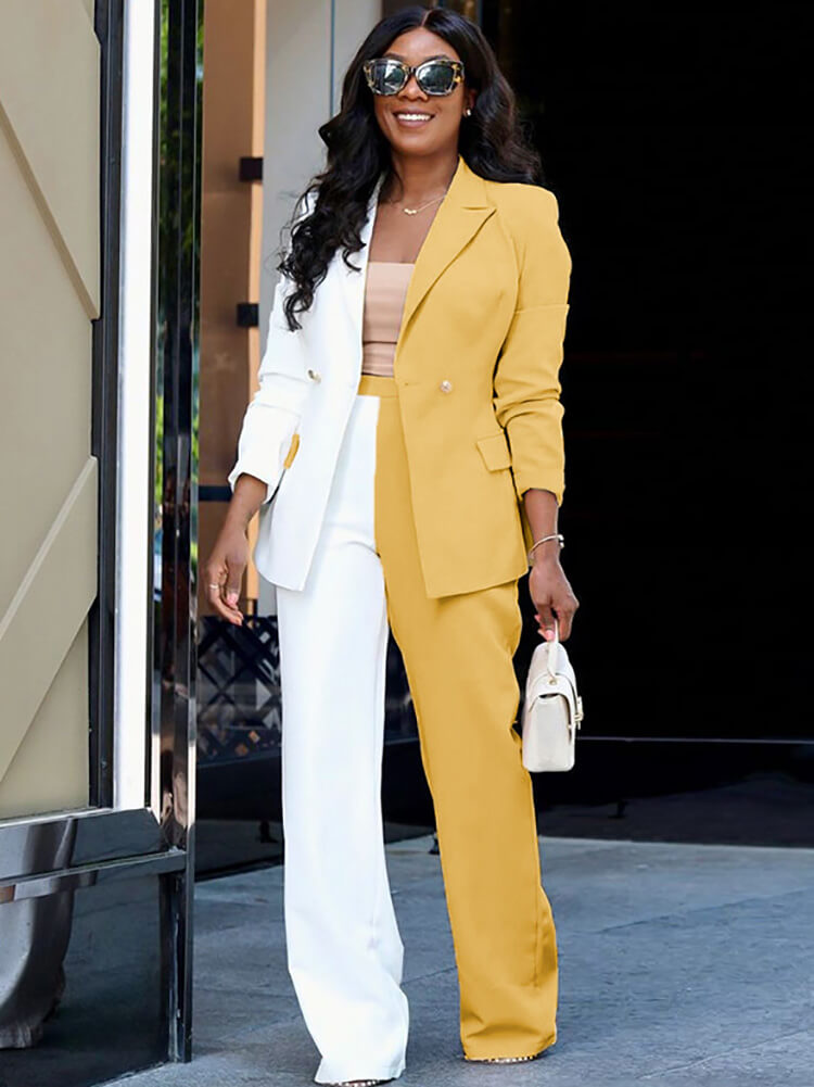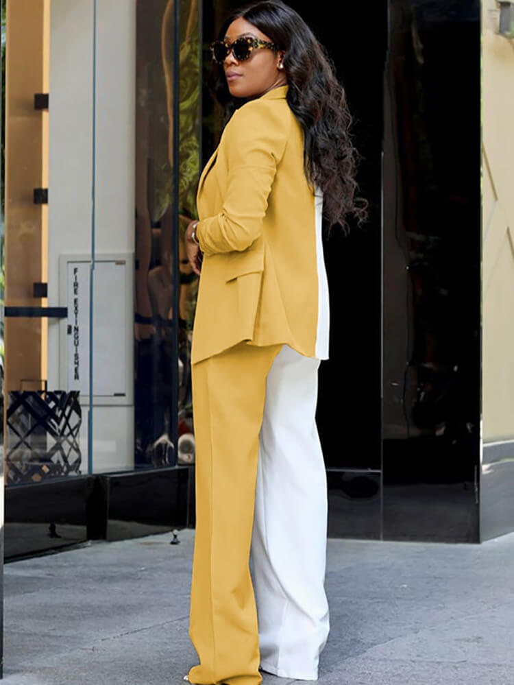 Features: Long sleeve, cardigant, patchwork, color block, high waist, casual, two piece outfits.