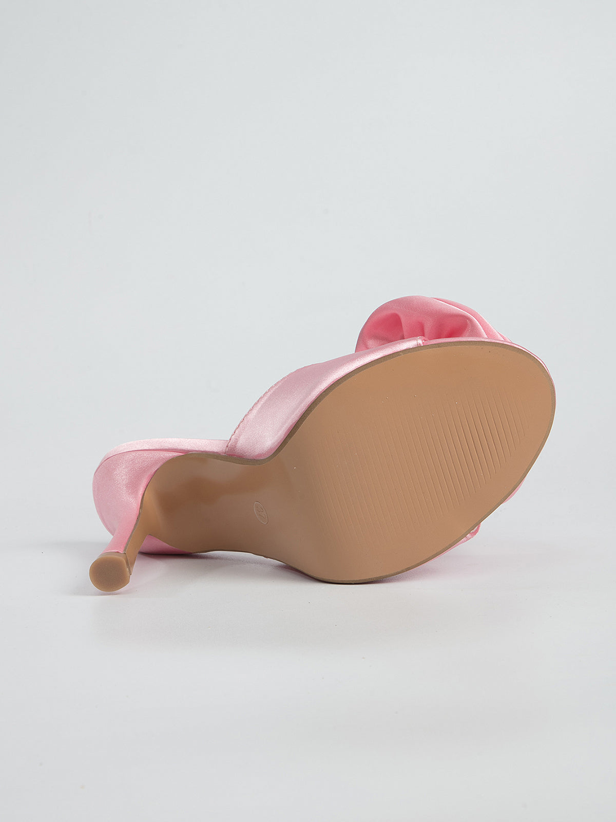 Peep Toe Satin Floral Stiletto Heeled Mules
