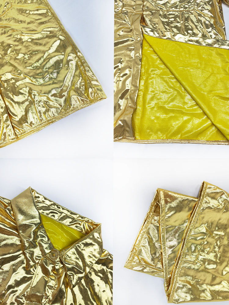 Feature: Glitter, short sleeve, button, collar, bodycon, shirts, tops.