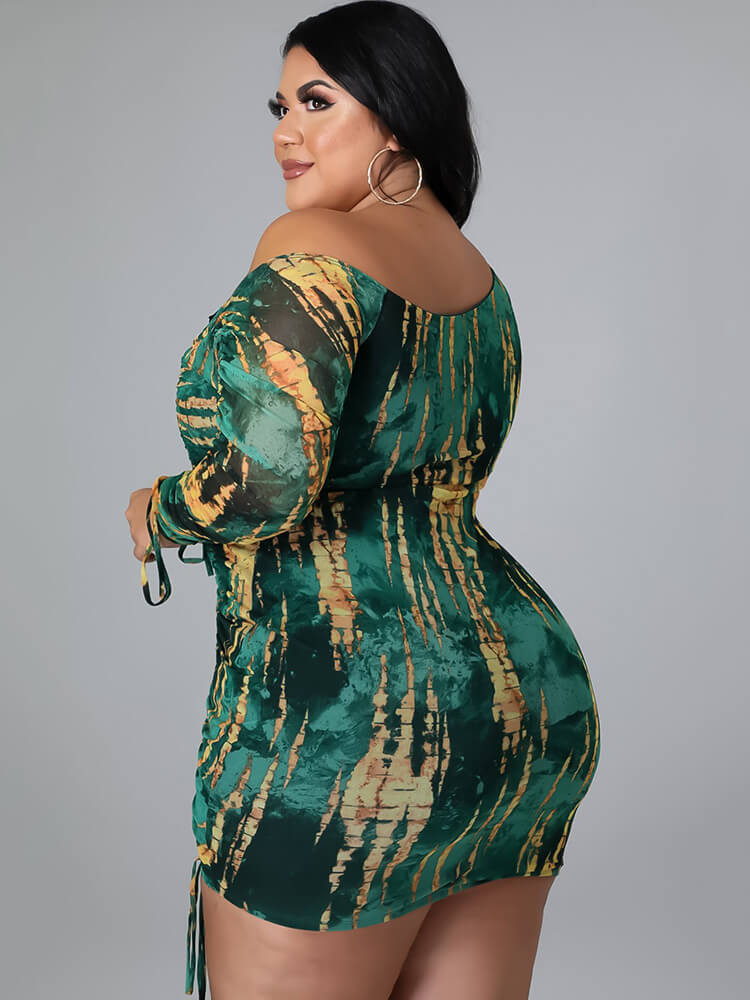 Feature: One shoulder, long sleeve, drawstring, tie dye, ruched, bodycon, mini dresses. Unique style makes you fashionable.