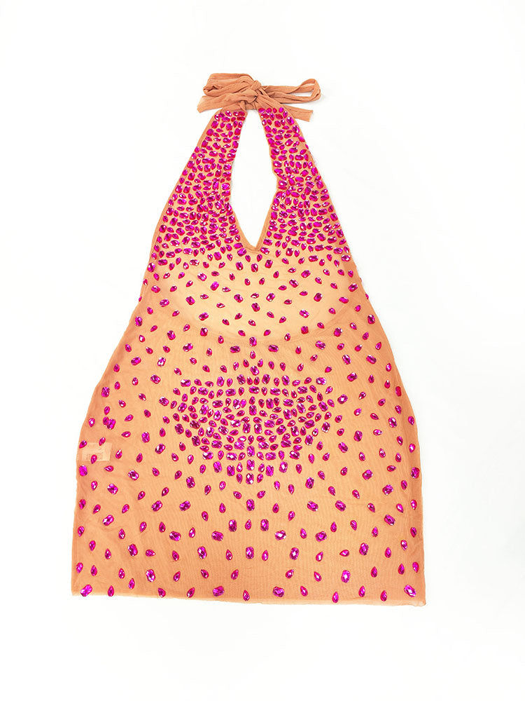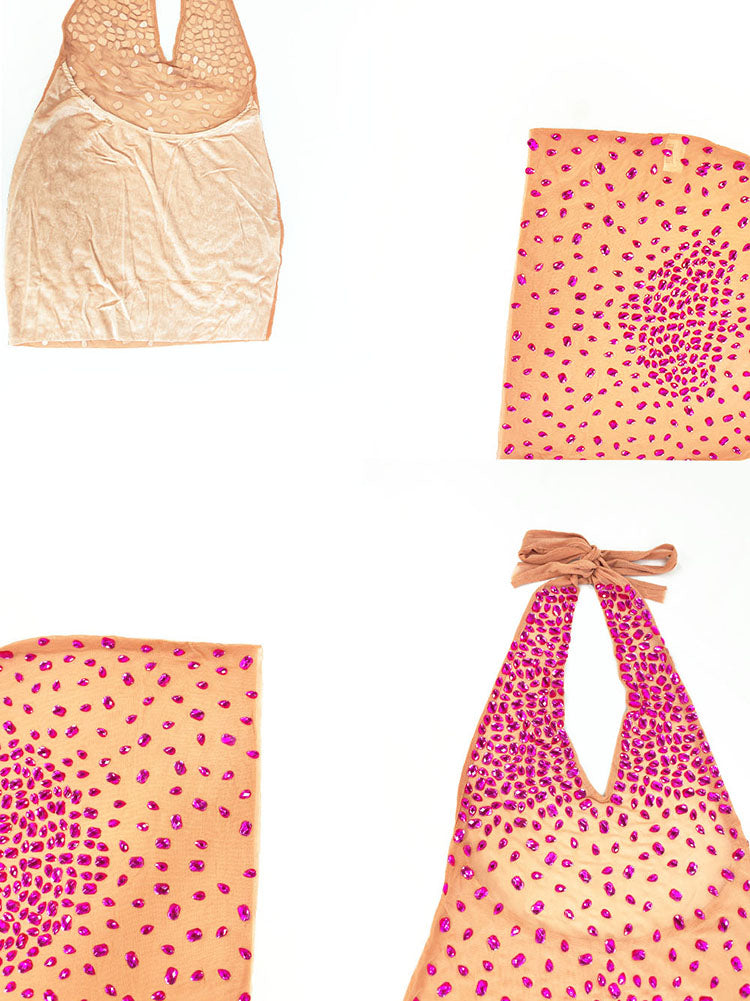 Sparkling Rhinestone Halter Open Back Mini Dress