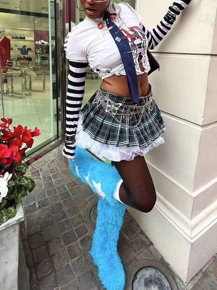 Cross lace-up front design Over-the-knee length Side zipper closure Chunky low heel Classic riding boot style
