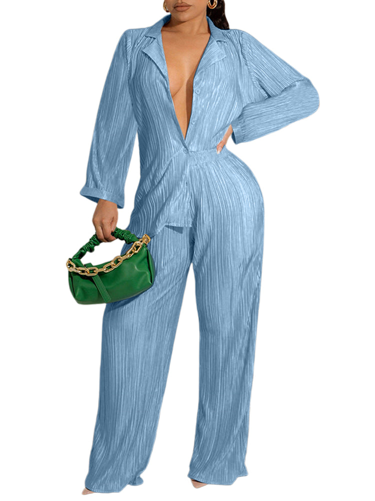 This 2 piece set is the perfect combination of comfort and style. Crafted from a high quality polyester cotton blend, the fabric is soft, lightweight, and breathable - providing ultimate comfort. The pleated detail and classic colors make the perfect look for daily wear, party, holiday and more! The loose fit v neck shirt features long sleeves with self tie closure, and the wide leg pants have an elastic waistband for easy on and off. Enjoy the durability, wear-resistance, and skin-friendly feel of this durable and lightweight ensemble.