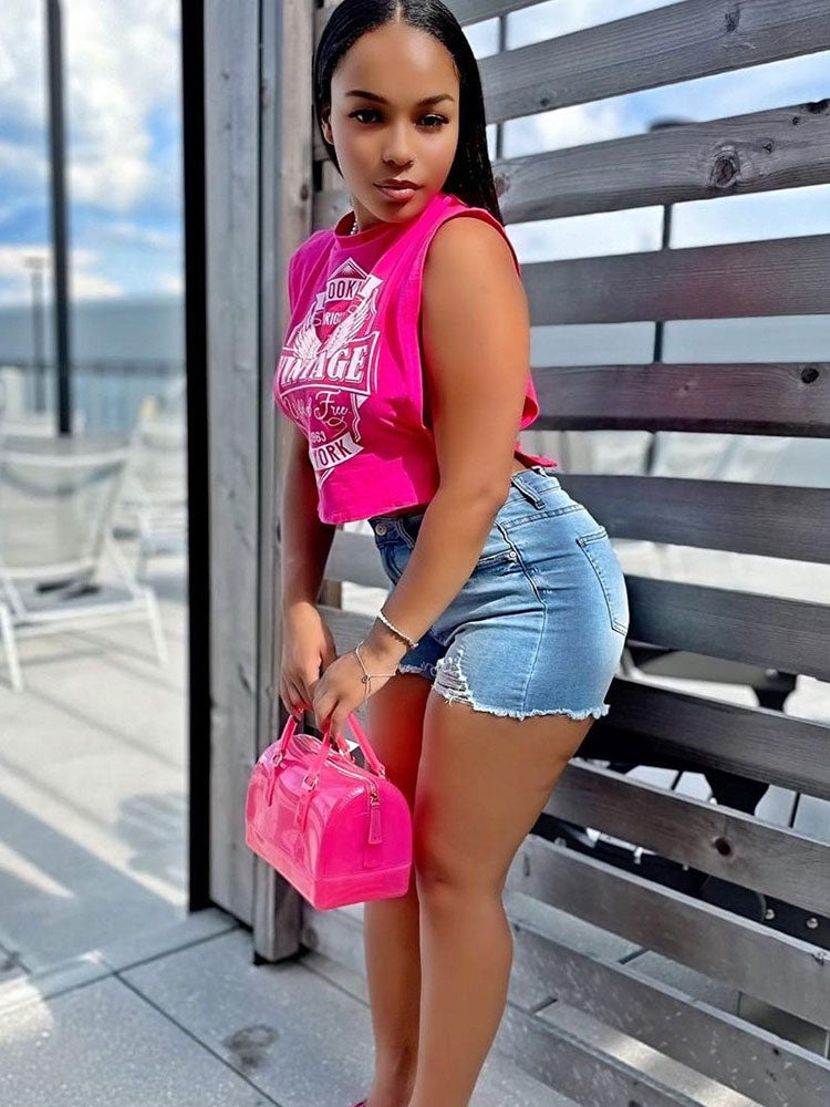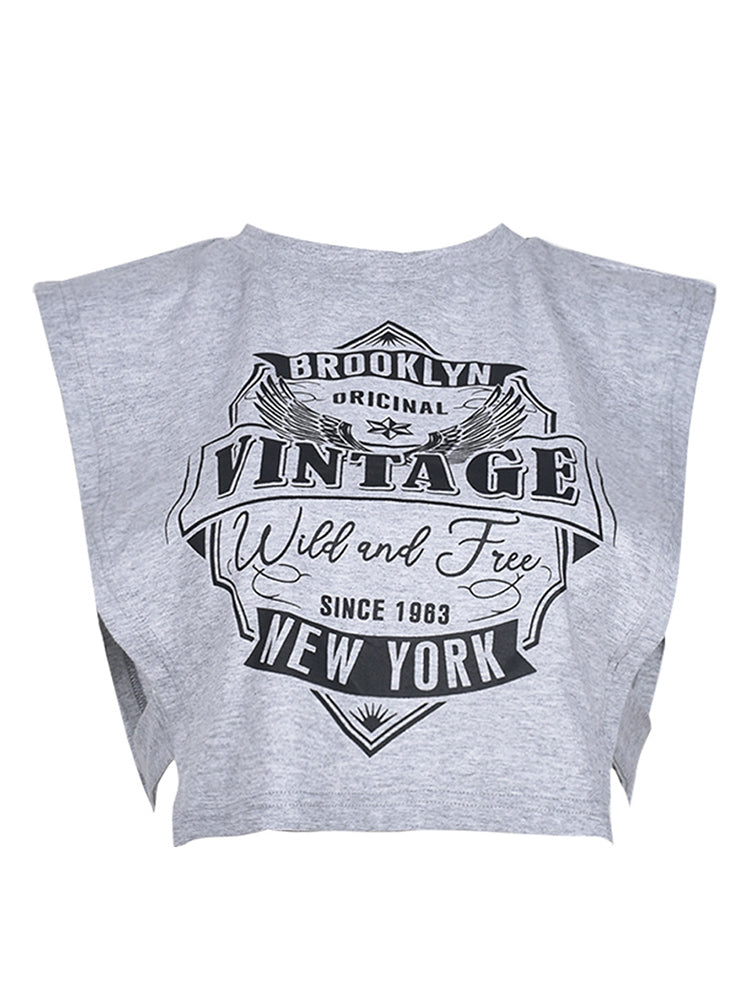 Printed Sleeveless Cut Out Crop Top