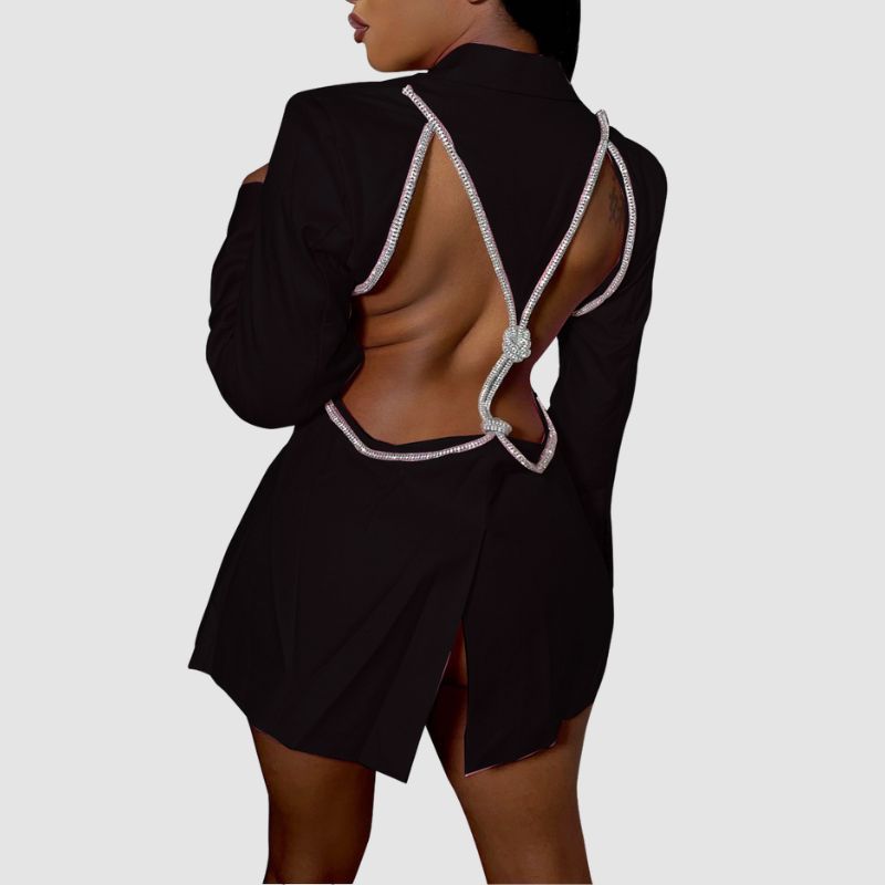 Features: Blazer, lapel, long sleeve, backless design, rhinestone decor, relaxed fit, soft and breathable, unisex, couple outfits.