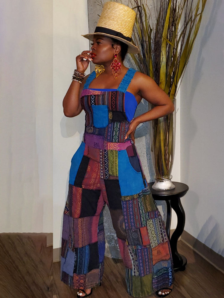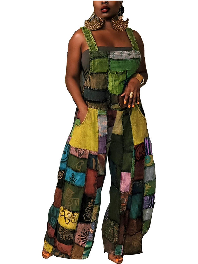 Features:Sleeveless, figure print, plaid, patchwork, wide-leg, long pants, overalls, one-piece rompers.