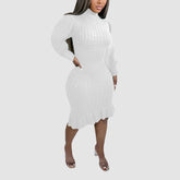 Ruffled Knitted Turtleneck Dress