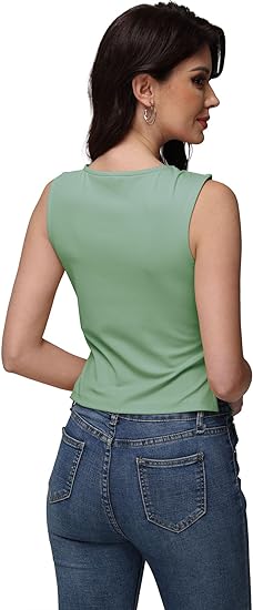 Strap Square Neck Pleated Tank Top