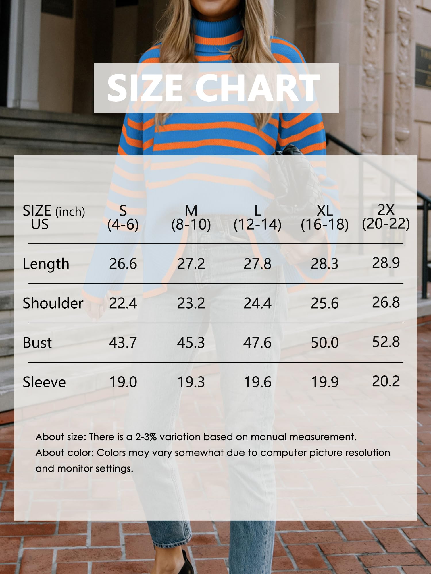 Features: Side slit, pullover, sweater, knit, striped, long sleeve, turtle neck. The turtleneck is skin-friendly and makes your neck more comfortable.