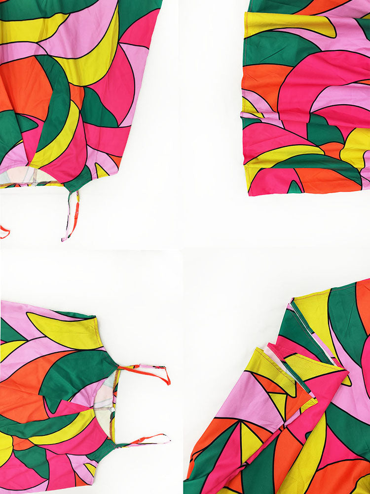 V Neck Backless Spaghetti Strap Printed Maxi Dress
