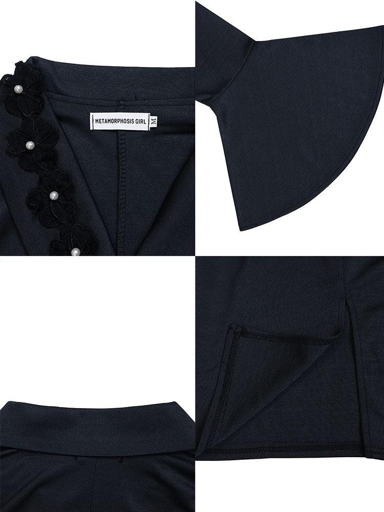 Features: Long sleeves,?pagoda sleeves, v-neck, high waist, flower patchwork, ruched, bodycon midi dress.