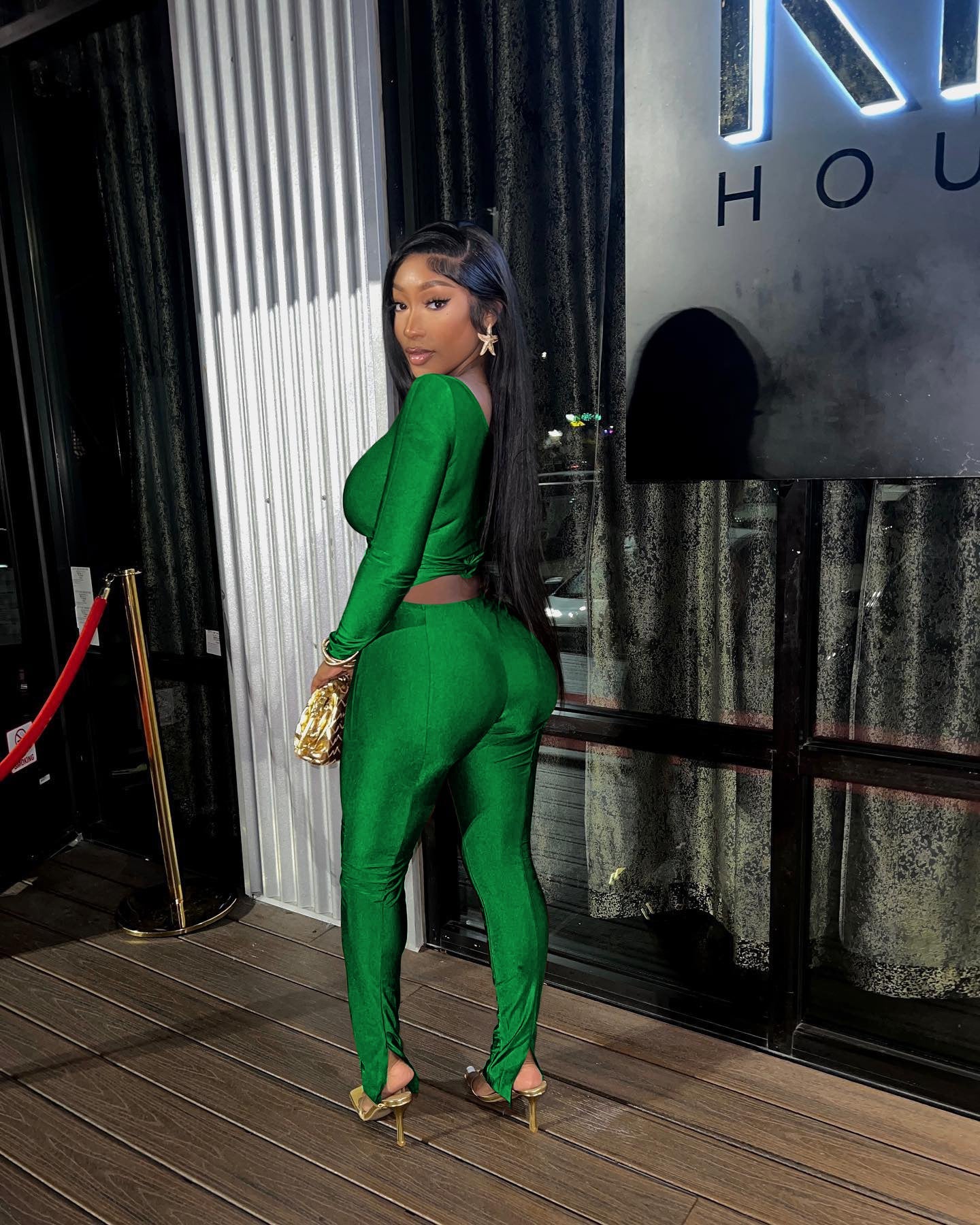 Constructed with a blend of polyester and spandex, these two-piece fashion pants sets for women offer a soft and comfortable fit that perfectly hugs the body.