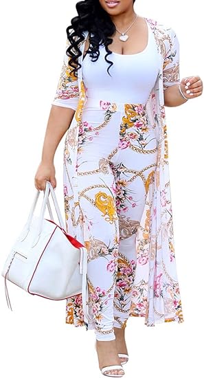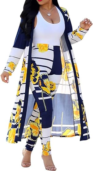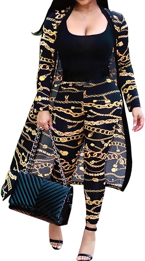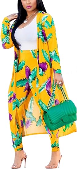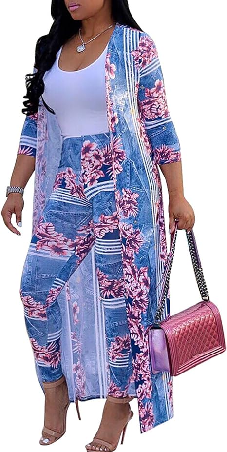 Two Piece Print Long Sleeve Cardigan & Bodycon Pants