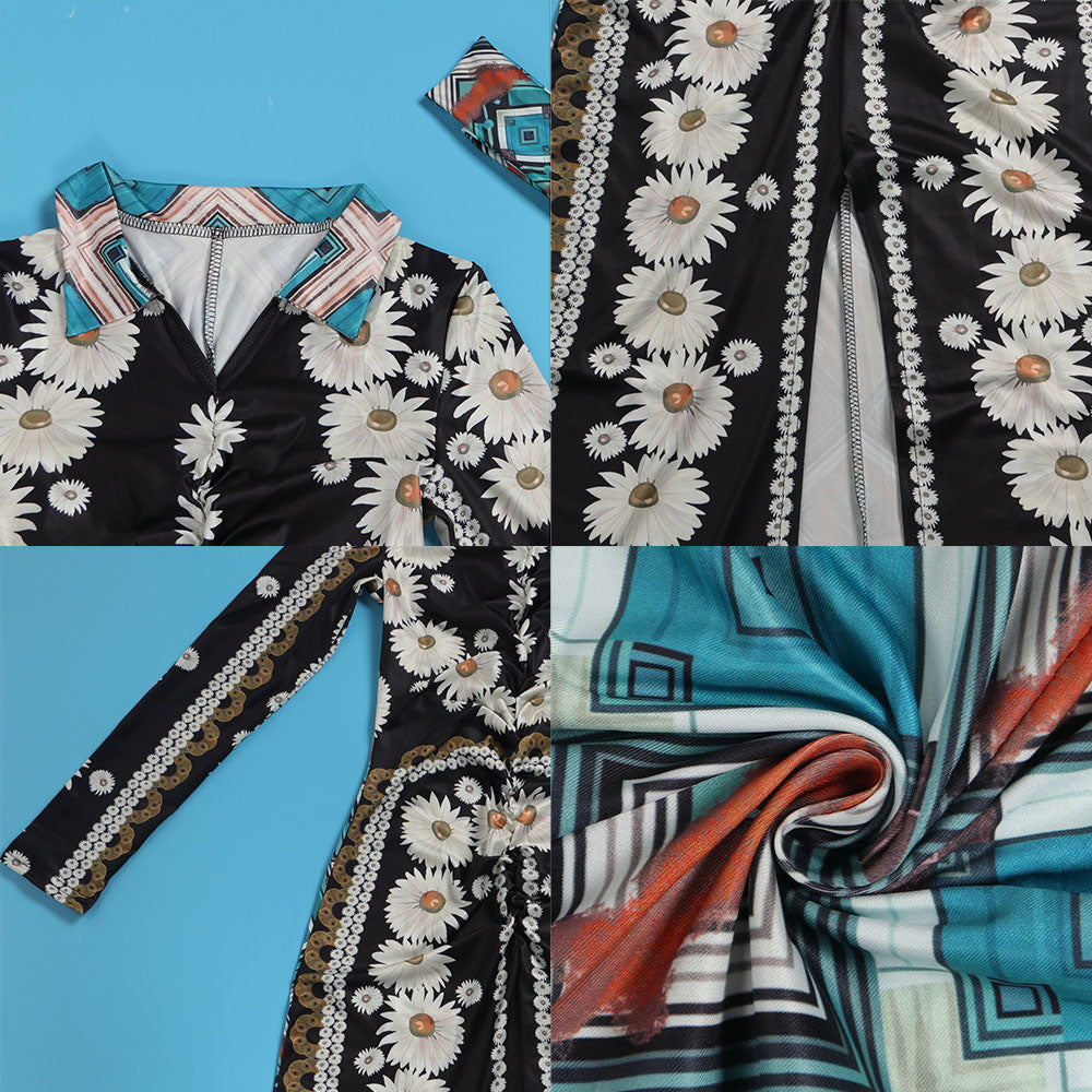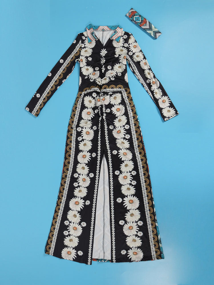 Floral Split Hem Bodycon Maxi Dress with Headscarf
