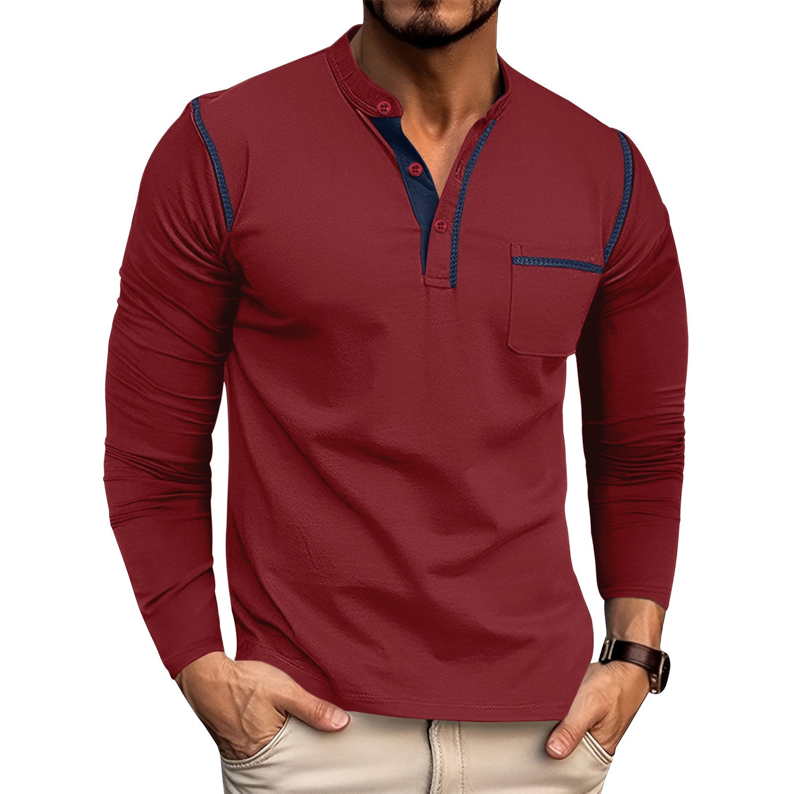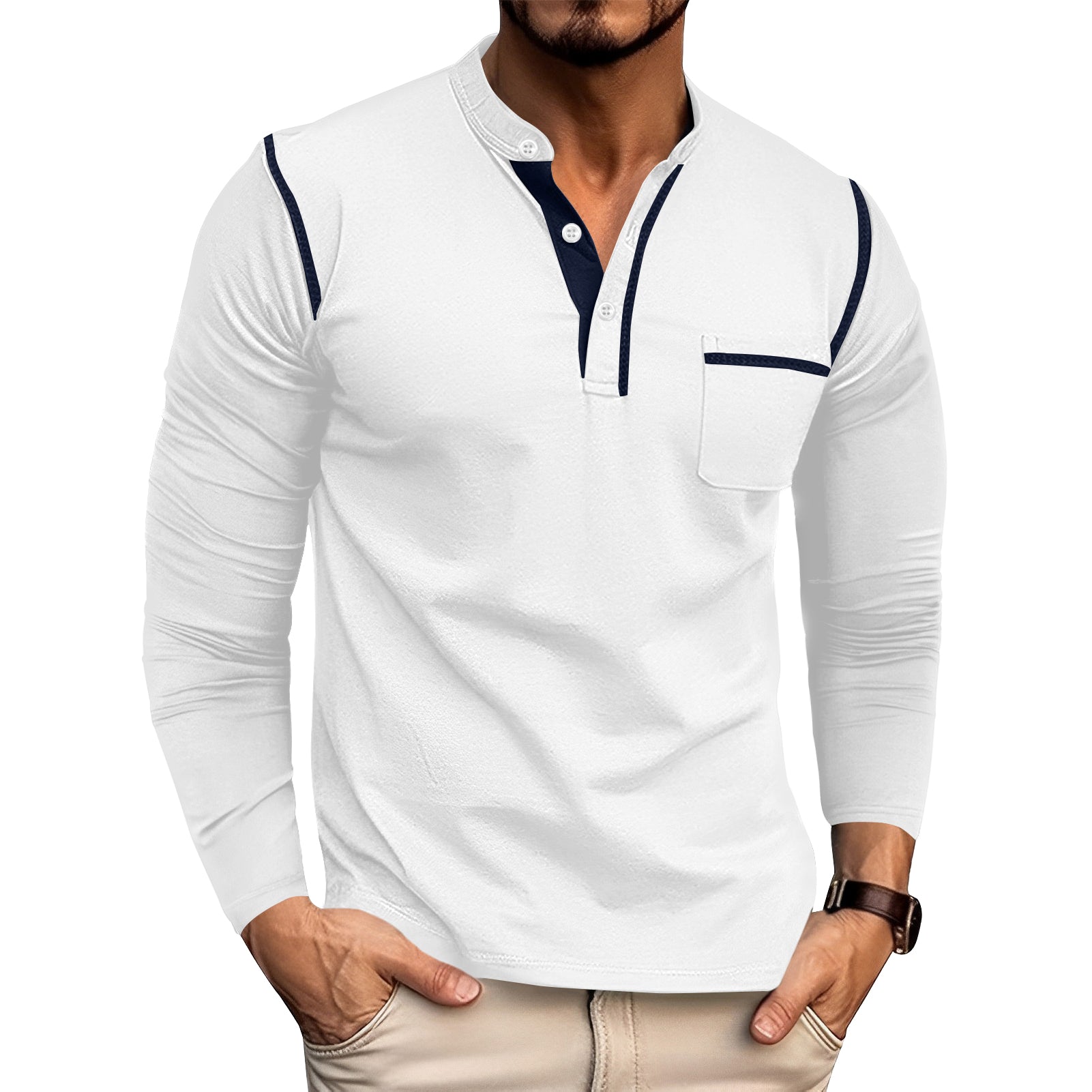 Mens Long Sleeves Crew Neck Buttons Shirts