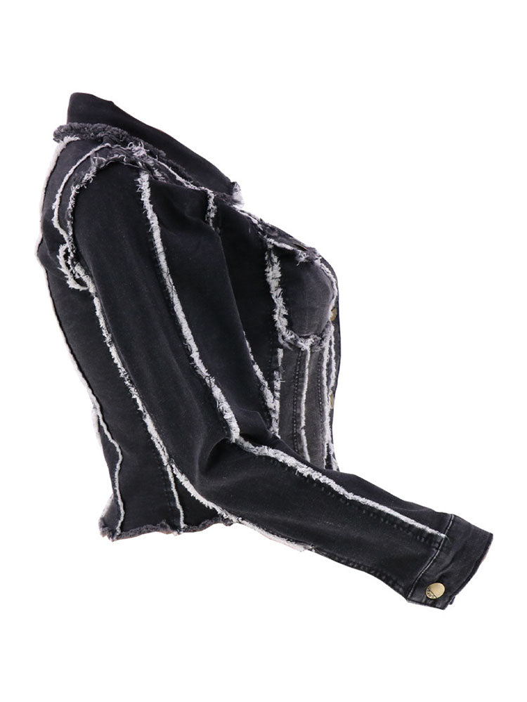 Features:Denim, long sleeves, button, stretchy, ripped, striped, short jackets.
