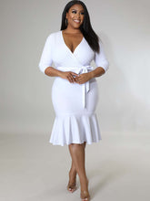 Half Sleeve Lace Up Ruffle Bodycon Midi Dress