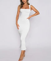 Asymmetrical Ruched Waist Bodycon Midi Dress