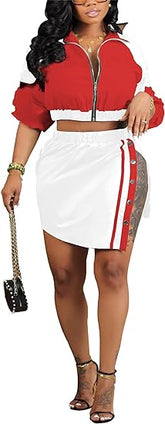 Two Piece Long Sleeve Zip Jacket split Skirts