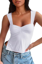 Constructed with a blend of 78% polyester and 22% spandex, this tank top is both breathable and lightweight, ensuring maximum comfort.Its ruched chest design and square neckline make it a stylish choice for everyday, casual, or vacation wear.- $19.80