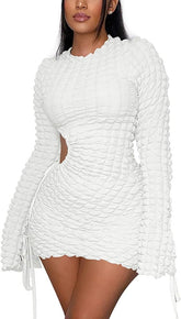Long Sleeve Ruched Cut Out Drawstring Mini Dress