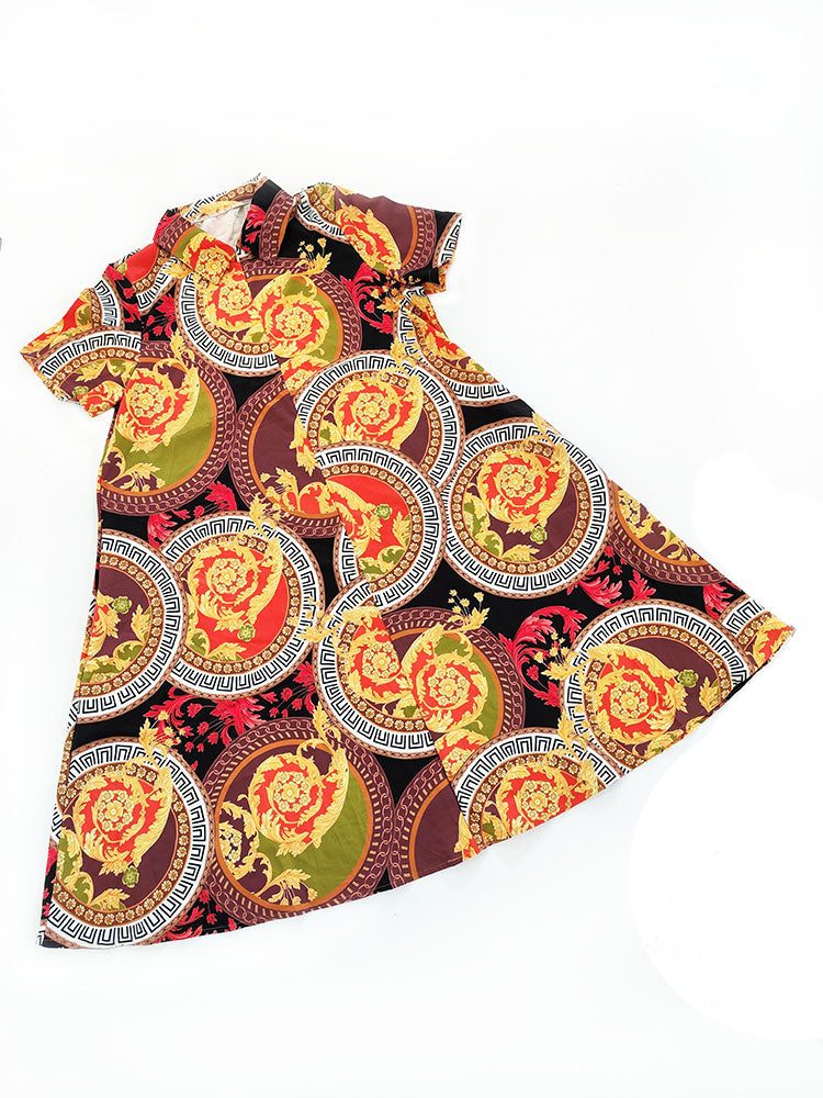 Flowy Plus Size Shirt Collar Short Sleeve Midi Dress