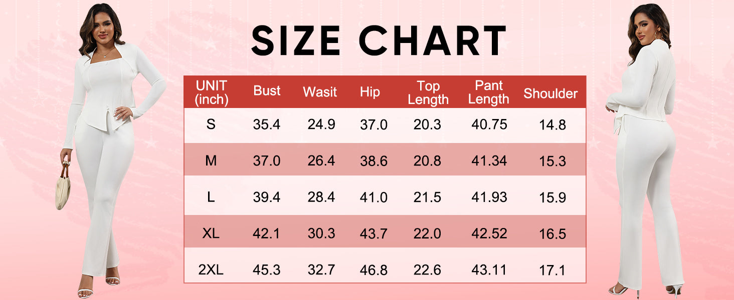 Features: Solid color, scoop neck, slit flare long sleeve, back zipper slim fit top, high waist bodycon flare pants, two-piece set.