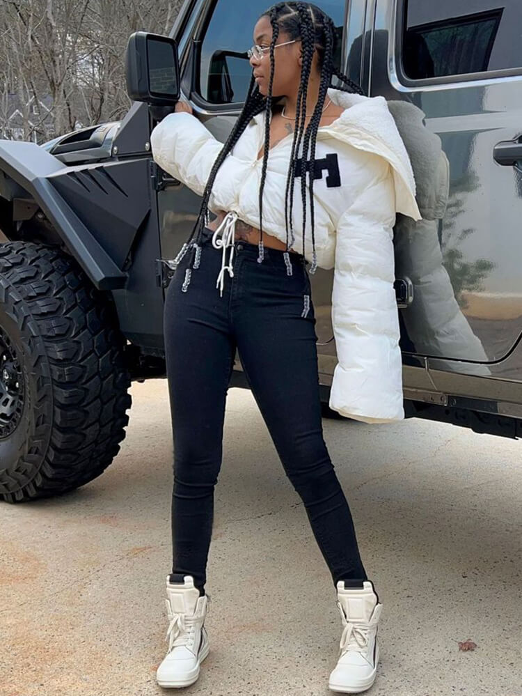 Feature: Long sleeve, patchwork, zip up, drawstring, letter print, bodycon, short jackets.